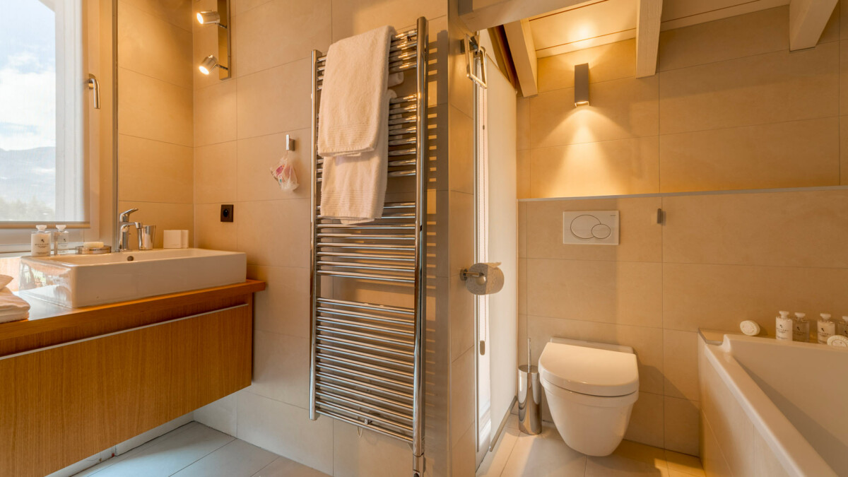 L’ensemble de la maison est chauffé par un chauffage électrique au plancher. Dans chaque salle de bain existe un radiateur chauffe-serviette.
