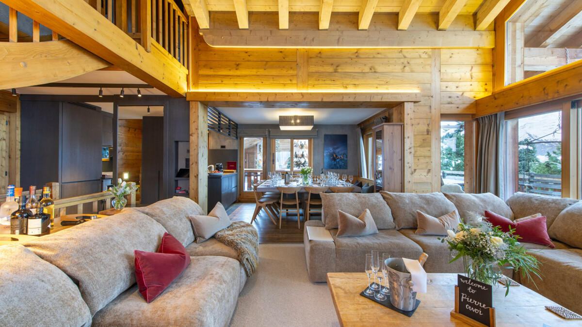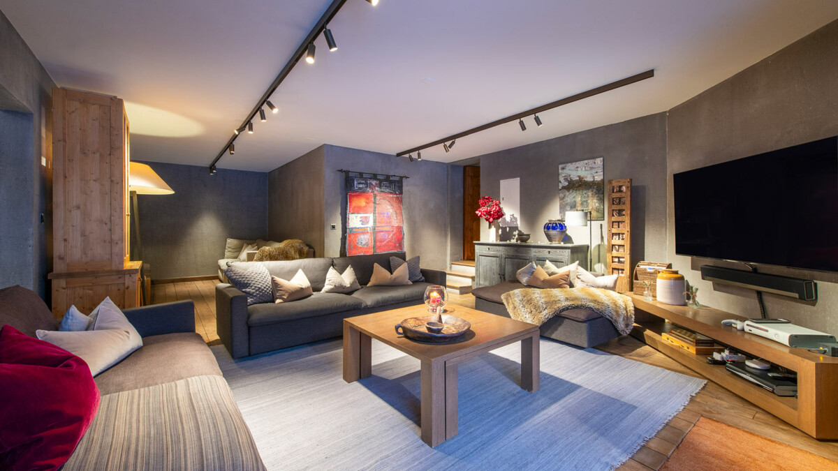 Réparti sur trois étages, le chalet peut accueillir jusqu’à 16 personnes dans huit chambres, toutes avec salles de bains privées et téléviseurs à écran plat. L’intérieur a été magnifiquement conçu, de nombreuses oeuvres d’art moderne ornent les murs de pierres minérales naturelles et le chalet est équipé d’un mobilier élégant. Le cœur du chalet est son double séjour avec cheminée en pierre et des baies vitrées qui s’ouvrent sur une vaste terrasse en bois orientée sud et sud-ouest.