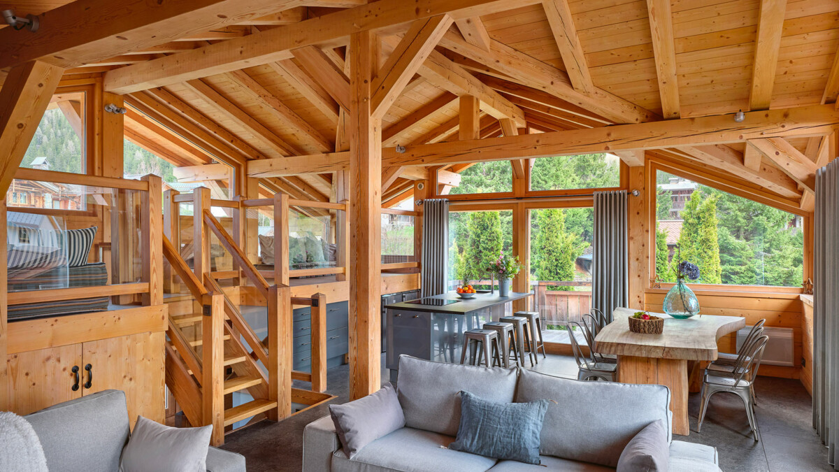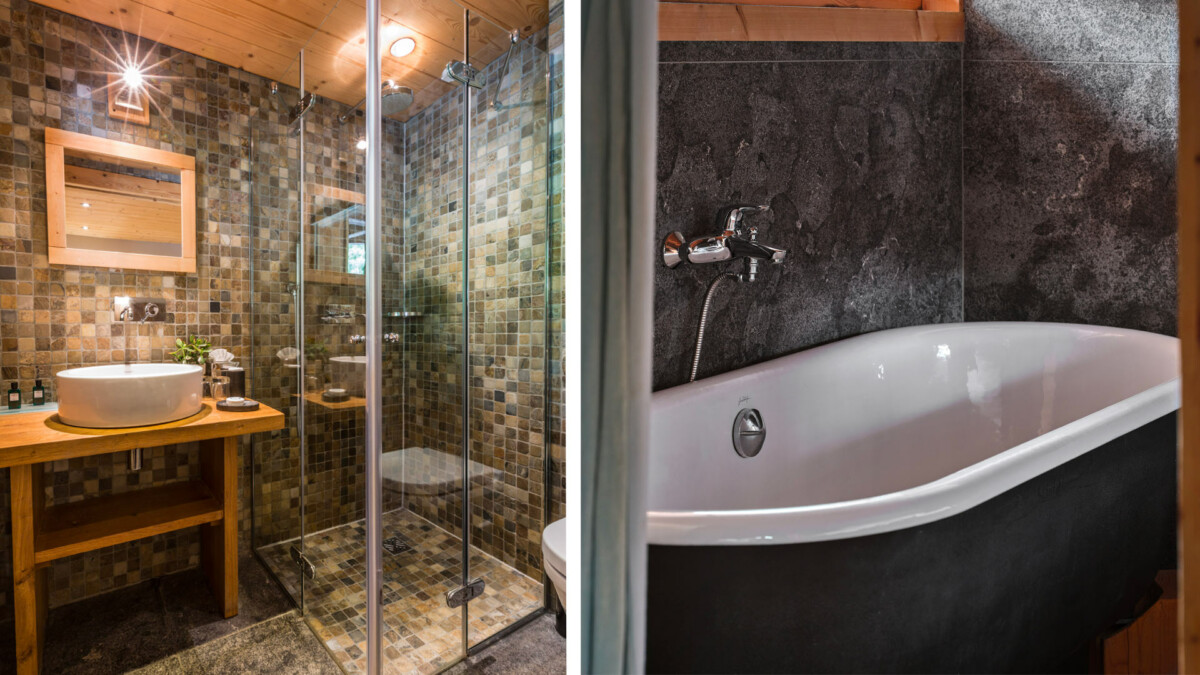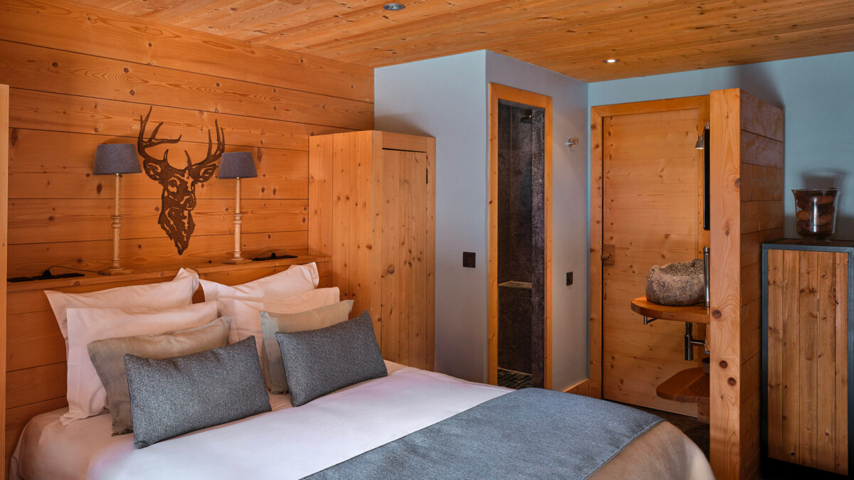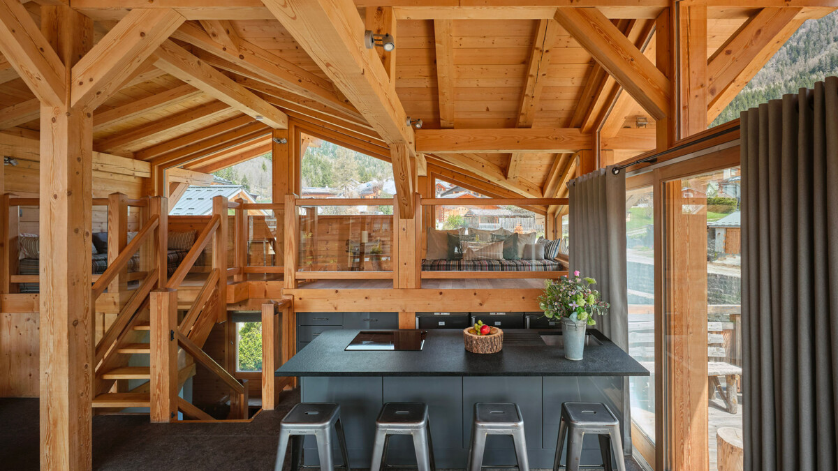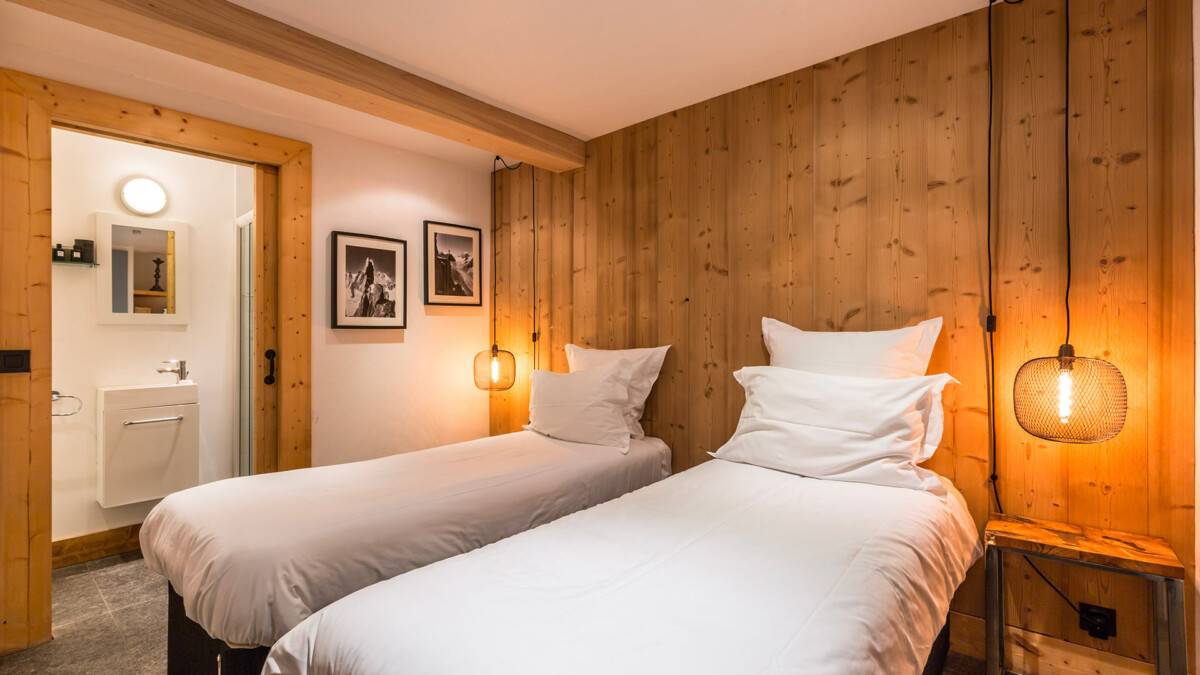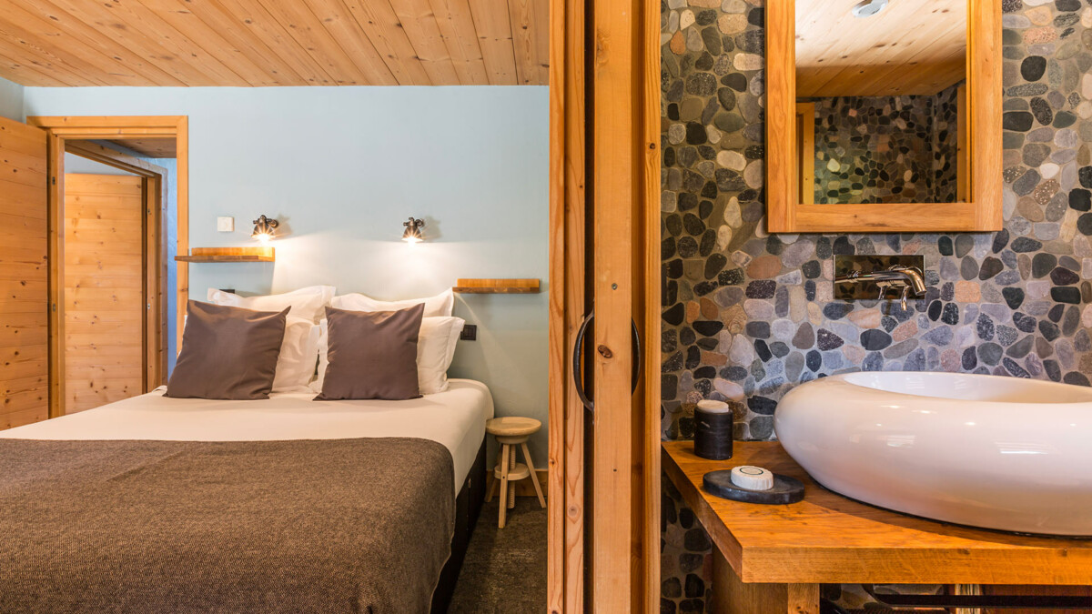 Le chalet Granit au bord de l’Arve bénéficie d’un grand séjour inondé de lumière ouvert sur une grande terrasse panoramique juste en face des pistes de ski des Grands Montets. Un savant jeu de matériaux naturels et de couleurs « glacier » apporte une ambiance relaxante et paisible avec son salon de lecture en mezzanine. Le granit mat a pris le pas sur les murs, les boules d’Arve sculptent le décor et des troncs de bouleaux vous transportent dans la forêt. Ce chalet peut être loué avec 3 autres chalets, le Chalet Cristalle Chalet Ardoise, et le Chalet Terre. Il peut également être loué uniquement avec le Chalet Cristal.