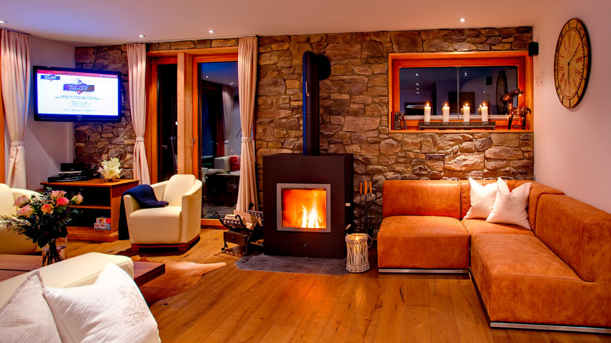 Le choix des matériaux utilisés – pierre et bois – s’est fait avec un soin particulier afin que l’agencement contemporain se mêle subtilement à une atmosphère authentique. Le chalet est doté d’une cheminée, d’un équipement des plus modernes avec des TV à écran plat, plus de100 chaînes satellites et d’un chauffage central géothermique afin de respecter au mieux l’environnement.