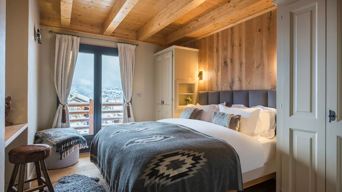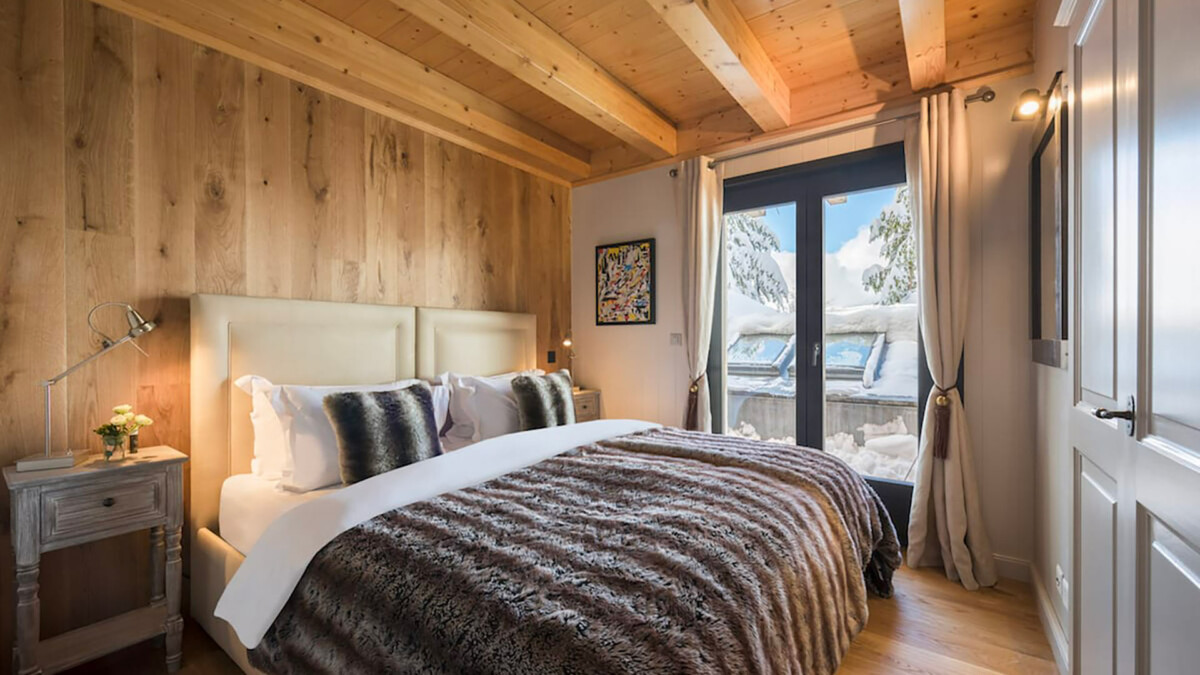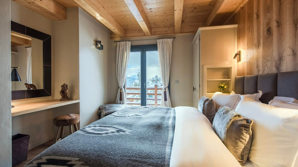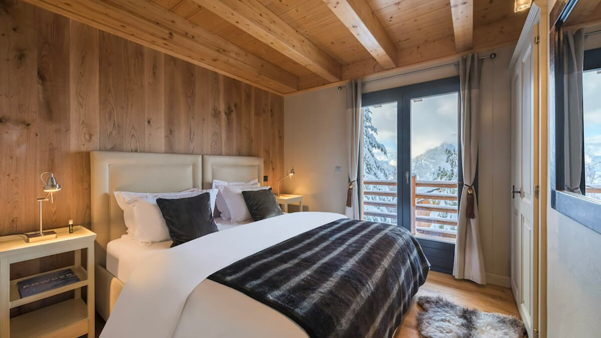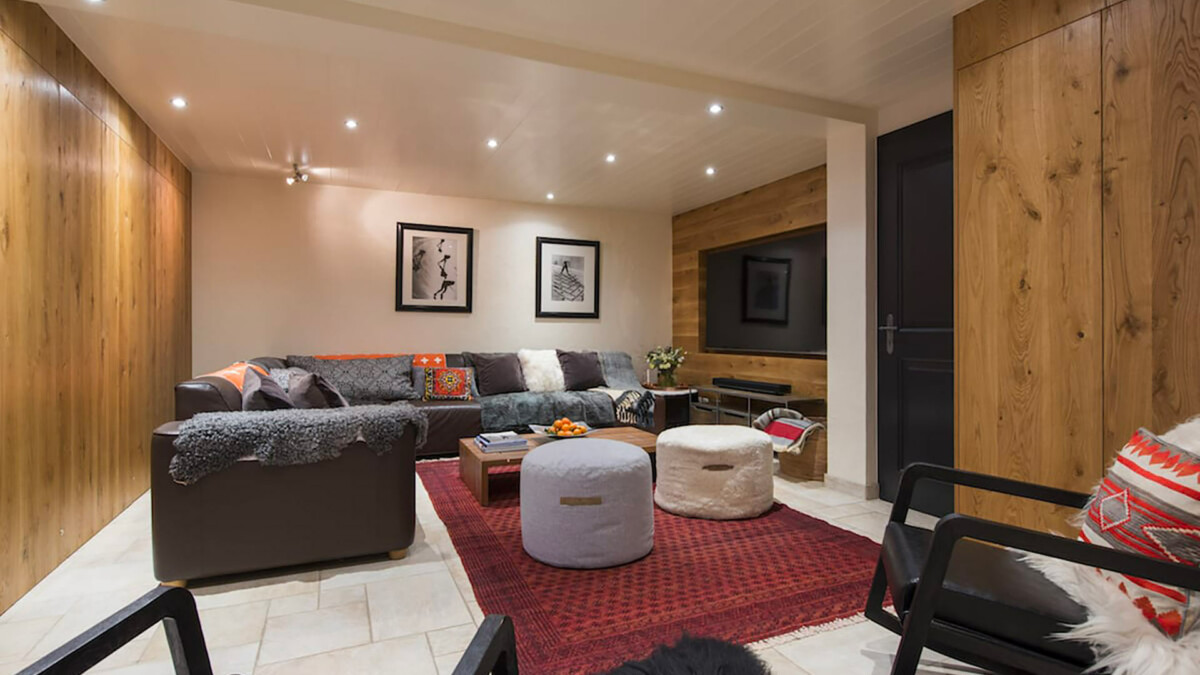 Le chalet propose une ambiance chaleureuse répartie sur cinq étages. Dès l’entrée, un grand hall mène aux chambres principales. Un espace de vie ouvert au dernier étage, avec une cheminée en pierre et des canapés confortables, invite à la convivialité. La cuisine ouverte et la salle à manger, avec une table pour dix, sont conçues pour les repas partagés.