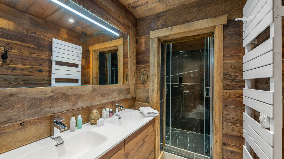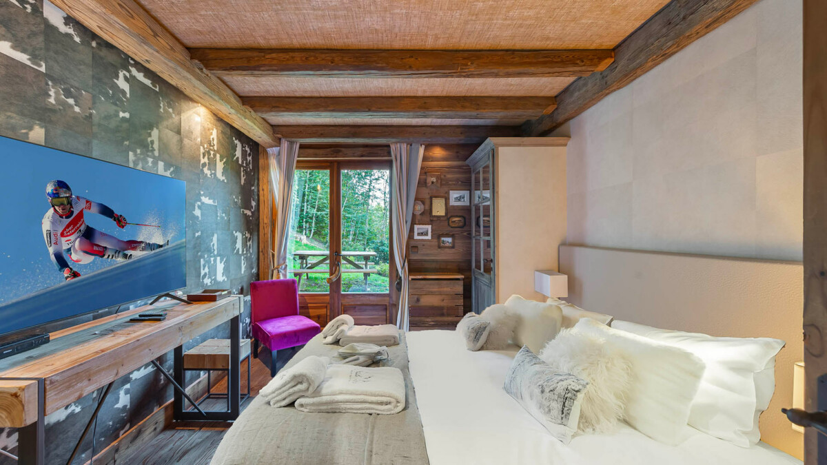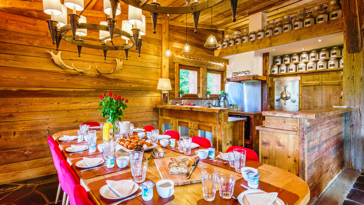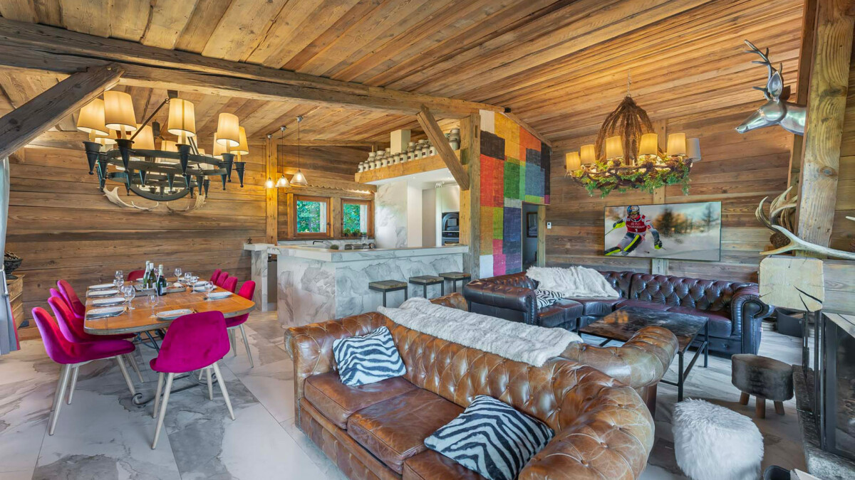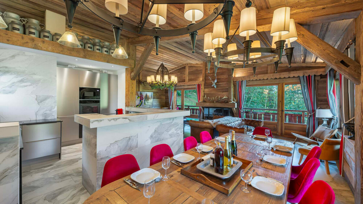 A l’intérieur, la chaleur du bois ancien se mêle à une décoration soignée et à des équipements haut de gamme pour un confort sans égal. Le chalet dispose d’une cuisine américaine entièrement équipée qui s’ouvre sur une grande salle à manger conviviale. Le séjour avec cheminée, grand écran plat avec Netflix, offre un espace de détente idéal après une journée sur les pistes.