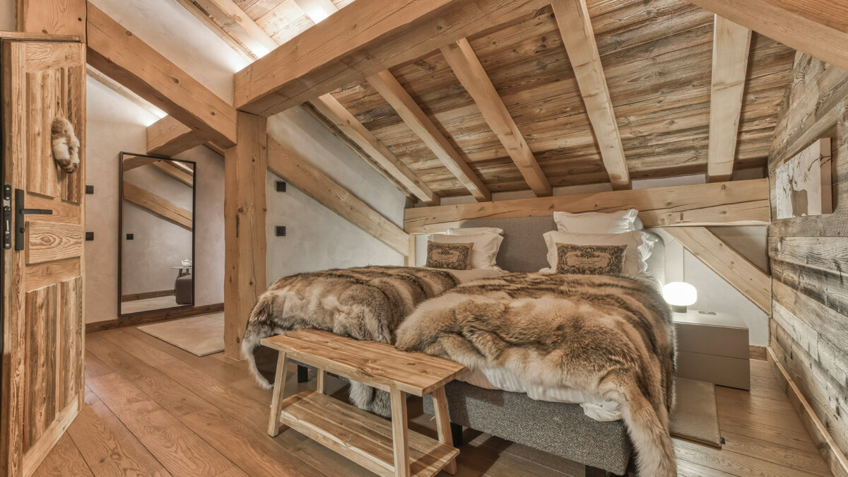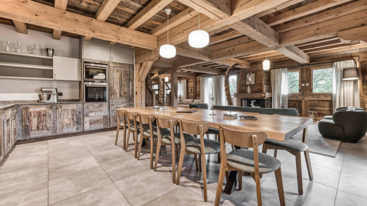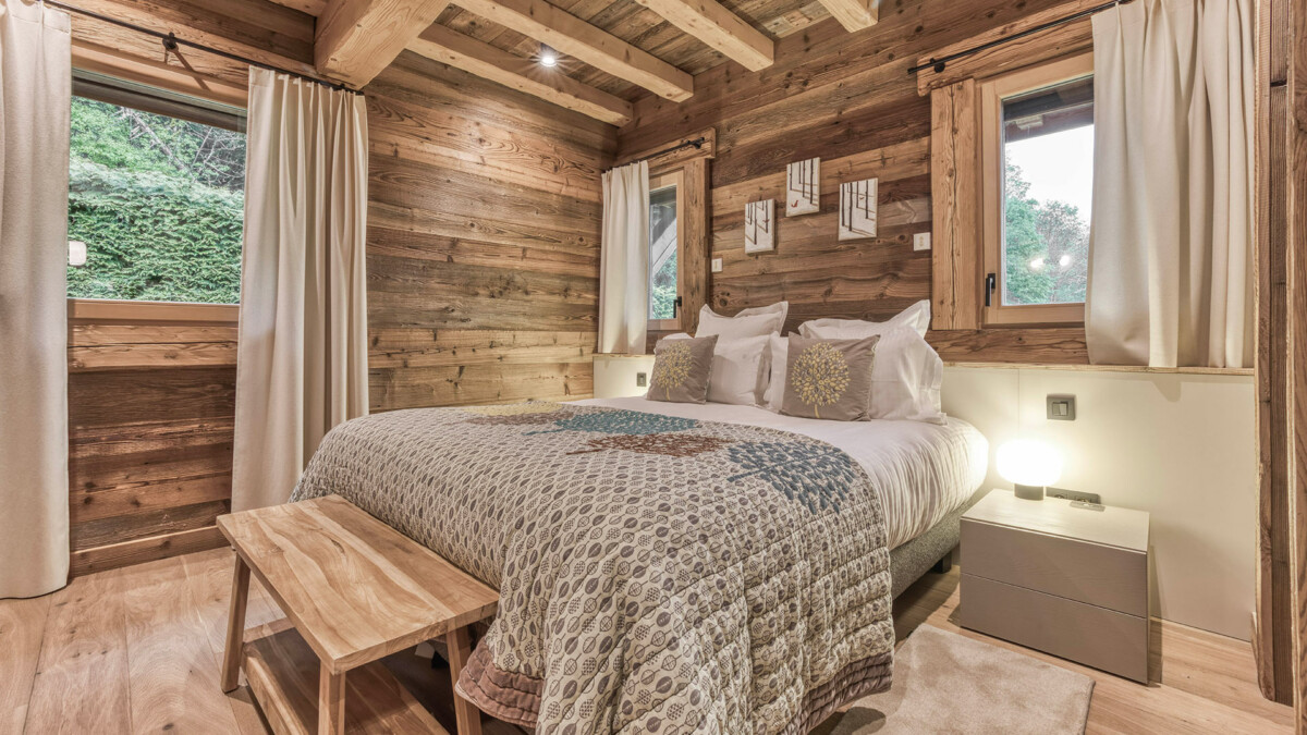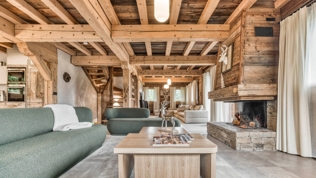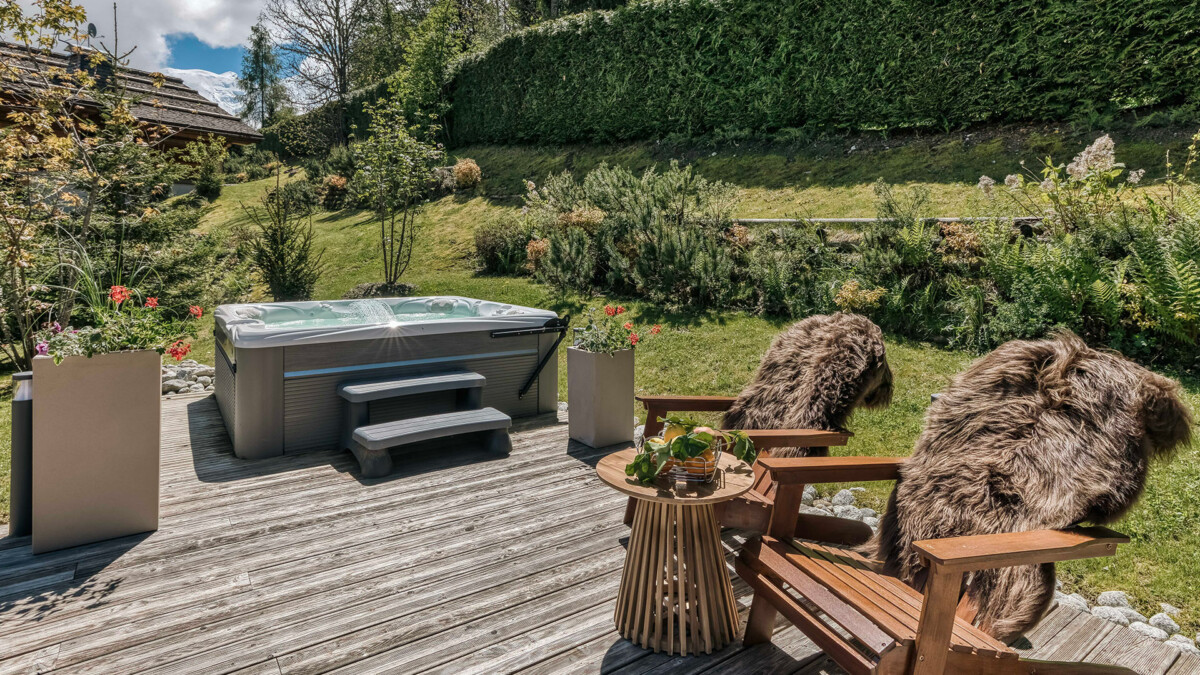The chalet opens onto a generous terrace with uninterrupted views of the Alps. The wooded grounds surrounding the property add to the sense of tranquillity and privacy.
