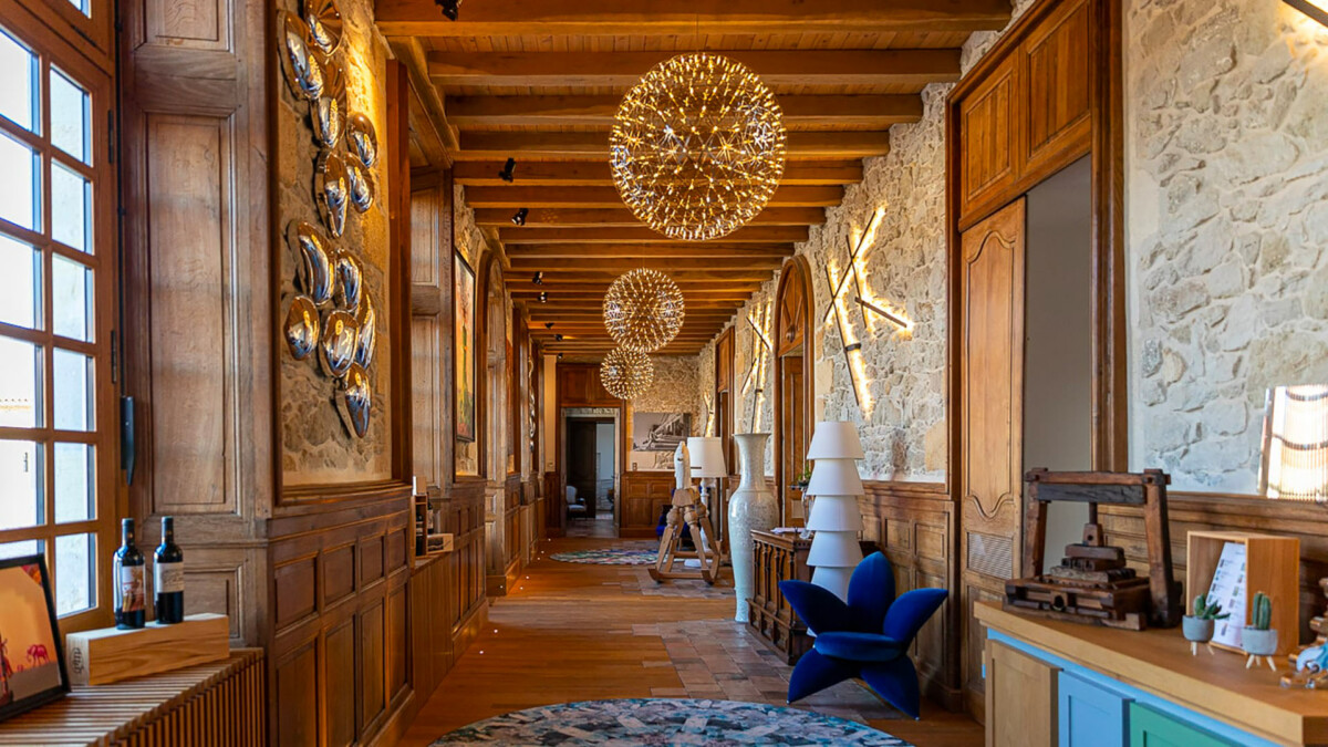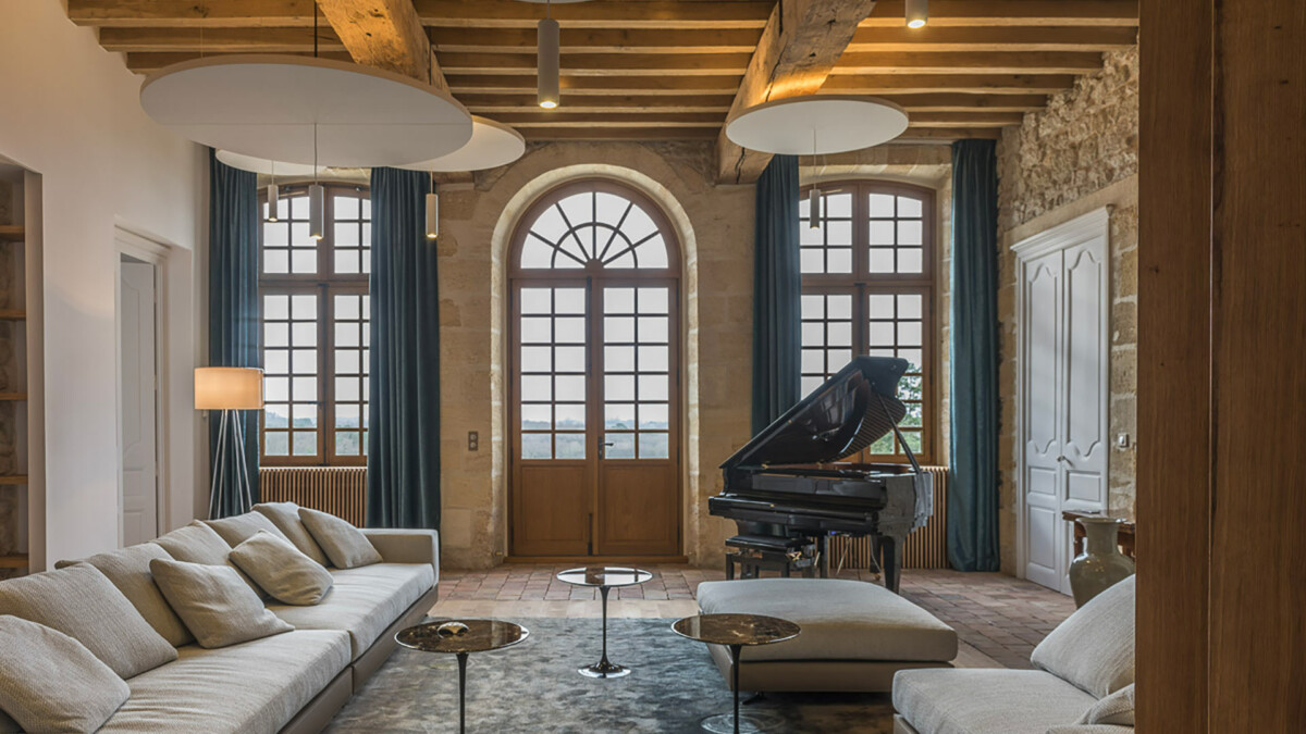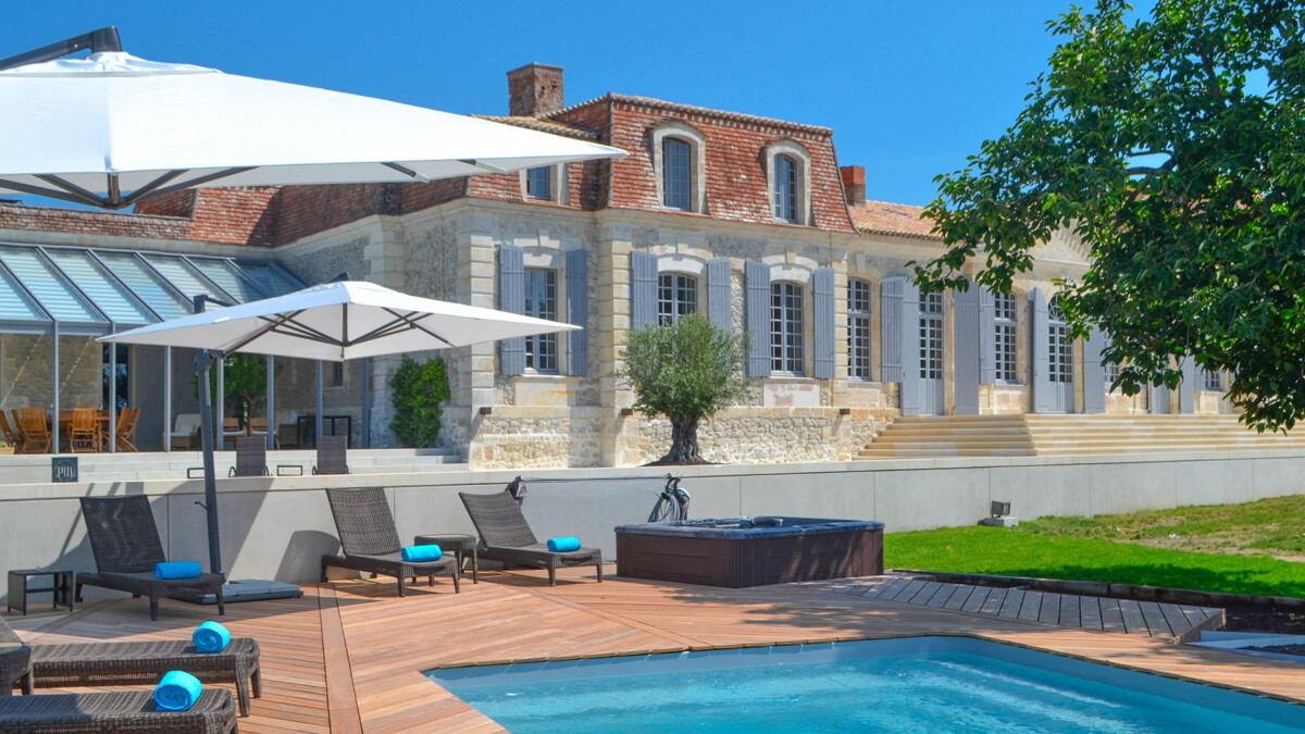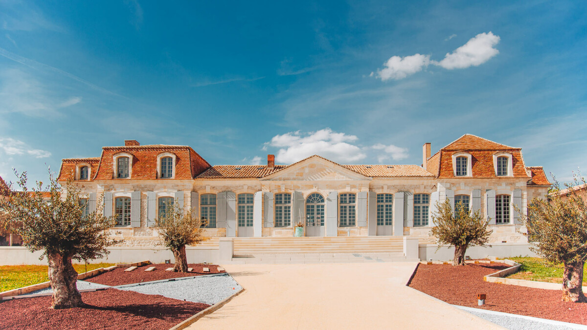 Situé au nord de Bordeaux, non loin de Saint-Émilion, cette élégante chartreuse du XVe siècle dominant ses vignes se découvre au bout d’une majestueuse allée, bordée d’arbres centenaires.
