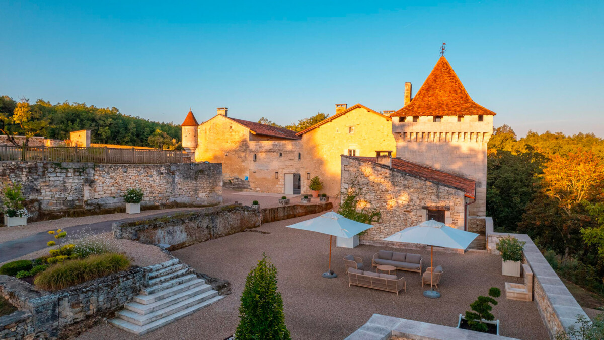 Au cœur du Périgord Vert à quelques kilomètres de Brantôme, ce magnifique château médiéval édifié entre la Renaissance et le XVIIème siècle sur des vestiges médiévaux a été superbement rénové en 2019. Situé près d’une ancienne voie romaine, au calme de la campagne, le Château offre des services de grande qualité, pour un séjour raffiné et authentique dans un cadre exceptionnel. Ses 11 chambres accueillent confortablement 22 personnes, réparties dans trois bâtiments : Le Grand Logis, Le Petit Logis et la Tour Carrée.