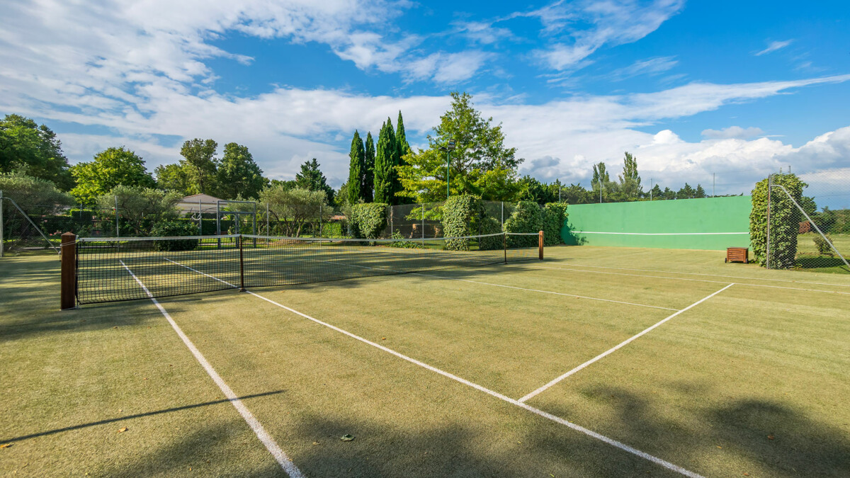 The adjacent farm building, of about 950 square metres, is an area that had been fully modernised and turned into guest bedrooms, guest facilities, the Conference and Business Centre and sports facilities.The accommodation is composed of 2 parts. (1) The first, which has three bedrooms, one with a king size bed two other with a queen size bed. If the tenant prefers, there is also (2) the second part, which has a bedroom with king size bed and two twin beds. All these seven bedrooms have ensuite bathrooms including baths and separate shower stalls, and overlook a stunning courtyard furnished with cloisters, seating areas, lawn, lemon trees, jasmine clad walls and a fountain.