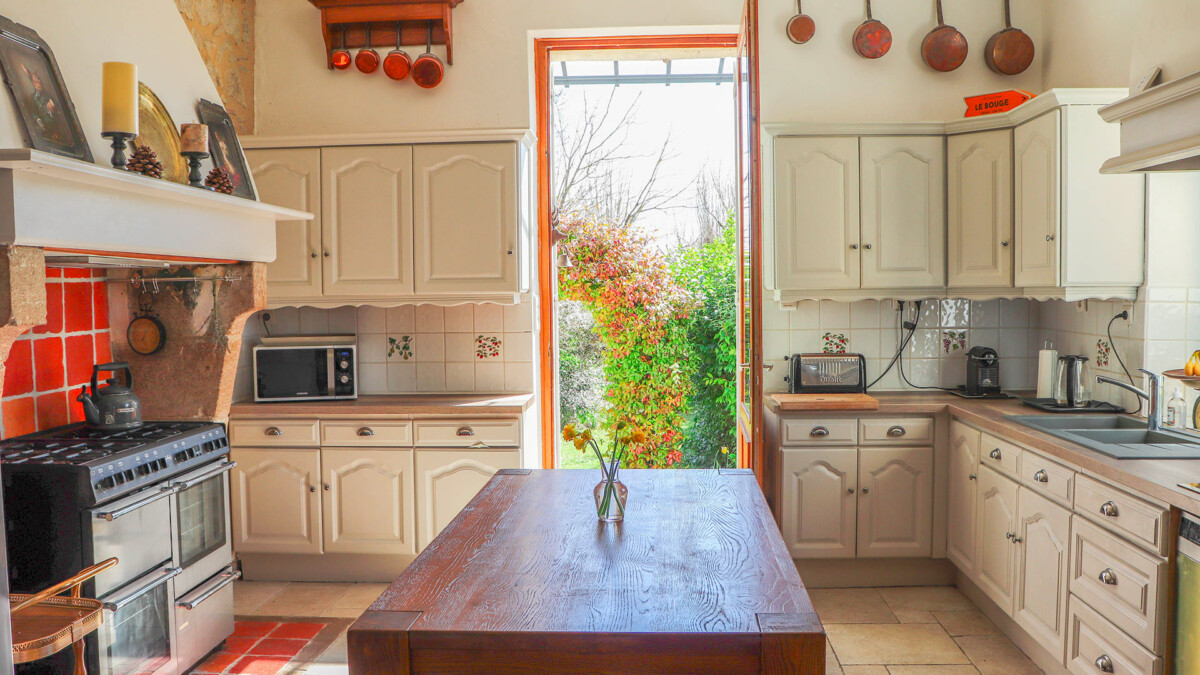 Au rez-de-chaussée, vous trouverez la cuisine et d’agréables espaces de vie, comprennant une salle à manger à double hauteur, un salon, un bureau, un salon intime (avec cheminée et vitraux) ainsi qu’une salle de bain. La salle à manger et le salon s’ouvrent sur le jardin et la piscine.