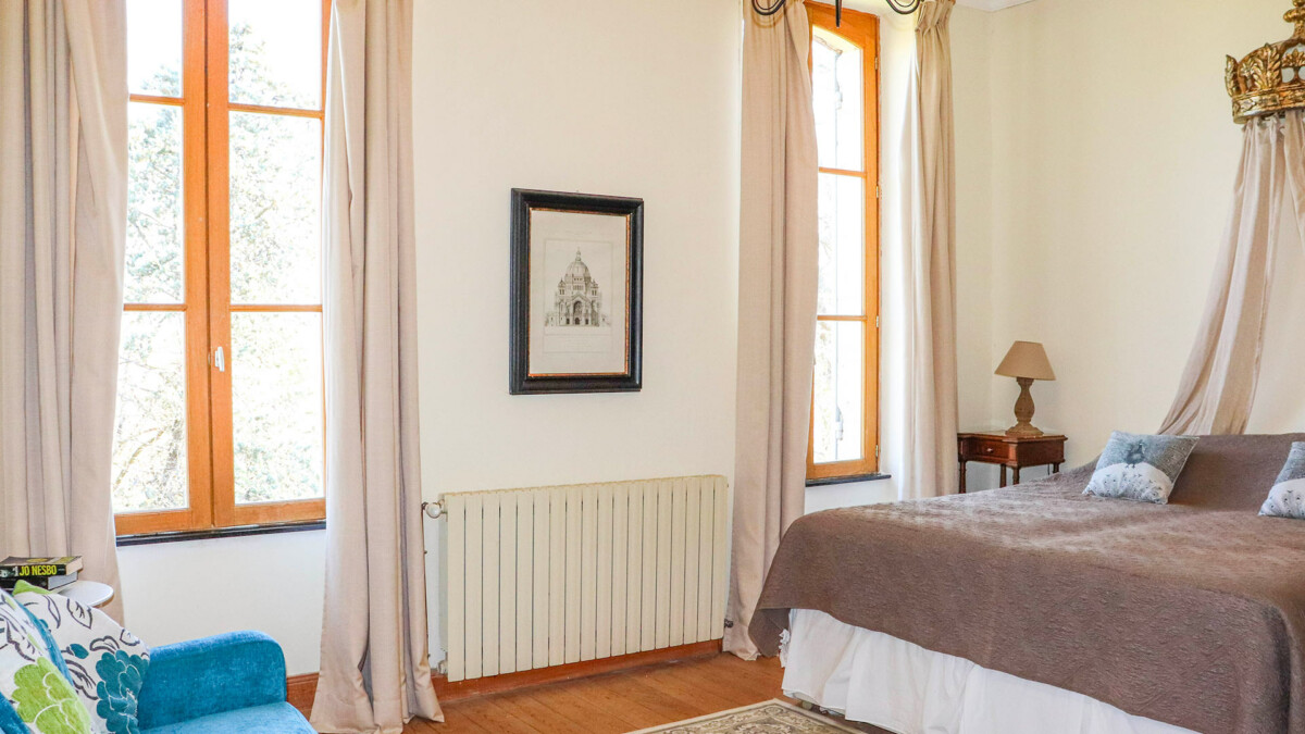 Les quatre chambres du premier étage offre toutes une vue sur la campagne. La suite parentale, située au deuxième étage, dispose quant à elle de son propre salon et de sa propre salle de bains.
