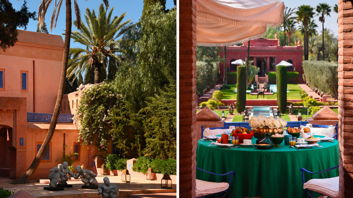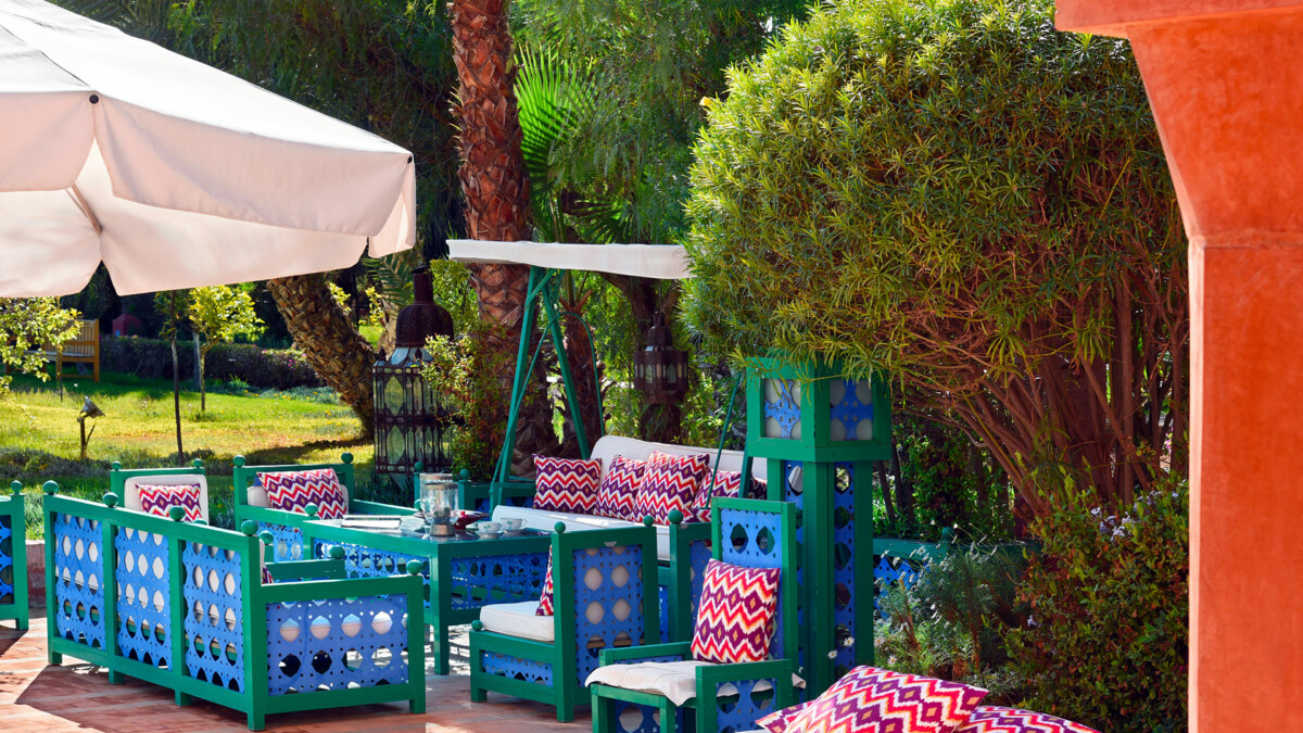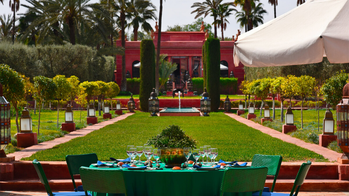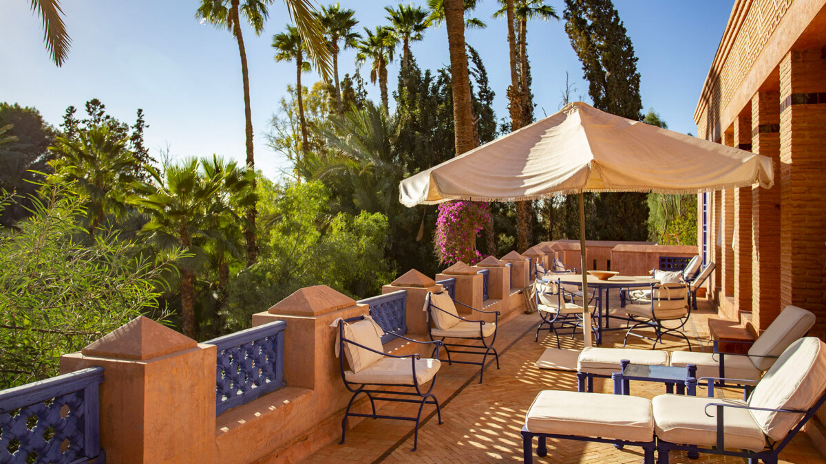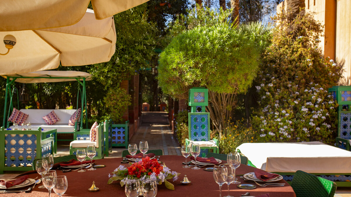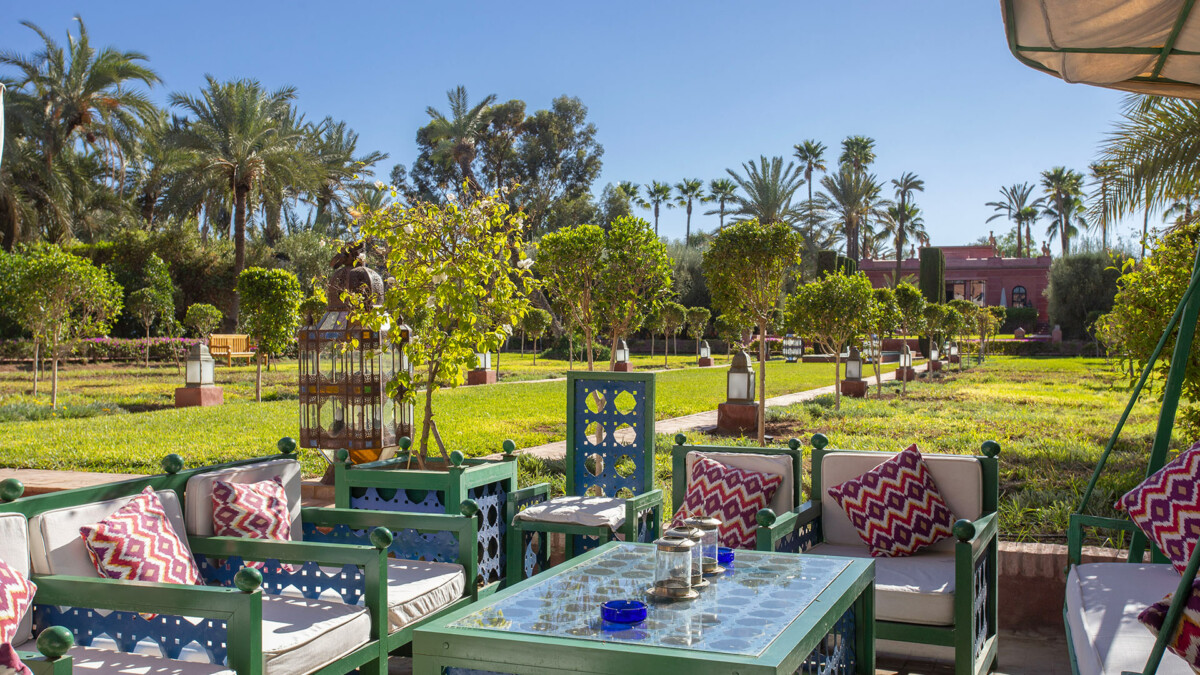 La villa « Dar Abiad » est une magnifique propriété qui se trouve au cœur de la mythique Palmeraie de Marrakech. Cette superbe maison familiale a été construite entièrement en pisé par le célèbre architecte Elie Mouyal et décorée par Jacqueline Foissac. Il s’agit de l’une des premières villas de la Palmeraie. La maison, l’immense jardin privé et ses arbres centenaires, les meubles et les objets de décoration, la présence du personnel, les touches orientales subtiles, tout cet ensemble dégage un charme surrané qui vous transporte dans le Marrakech des années 70 que chacun d’entre nous a fantasmé. On imagine si bien les figures de Yves Saint Laurent déambulant en djellabah bleue sur les terrasses ou Mick Jagger partageant un thé à la menthe avec Marianne Faithfull au bord du bassin au soleil couchant.