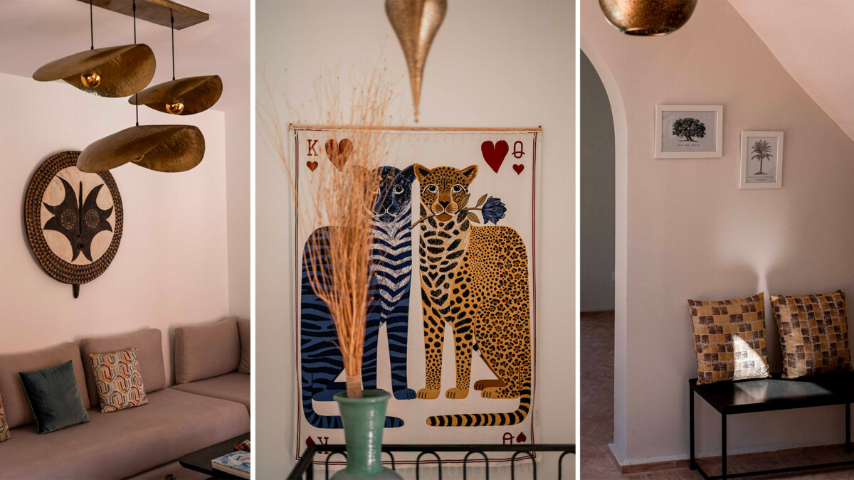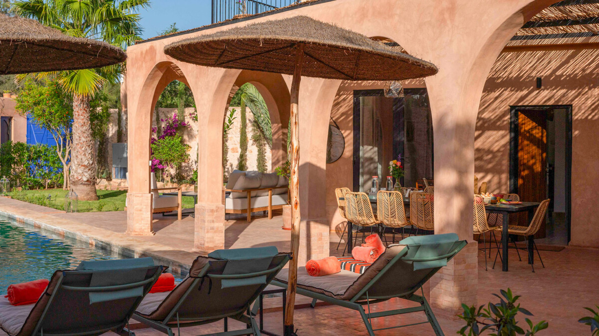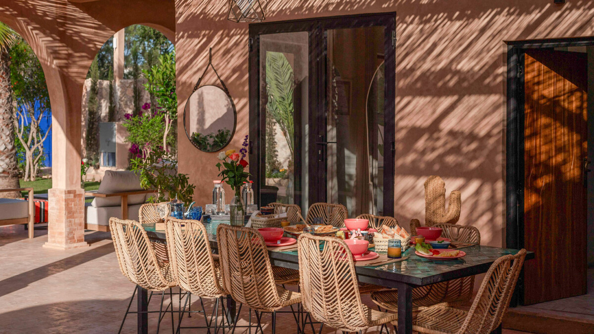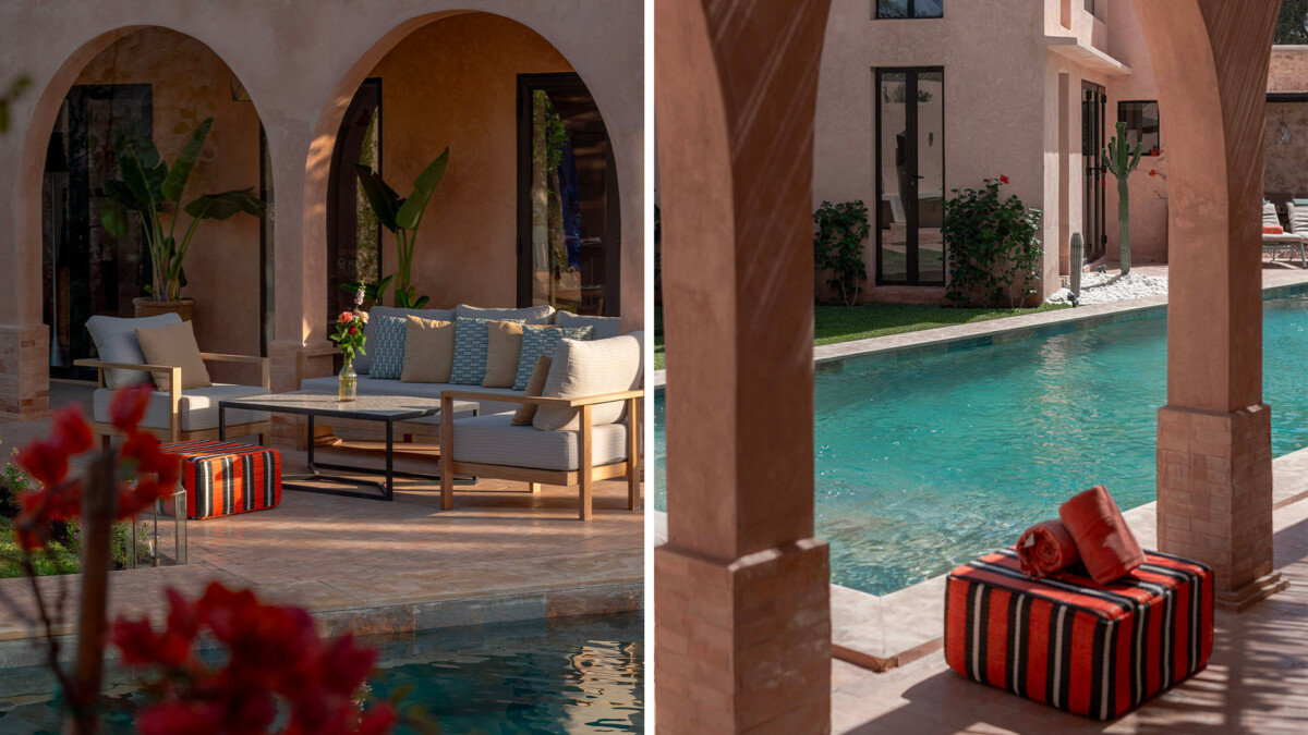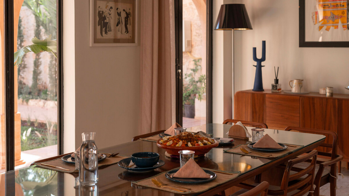 Les intérieurs de la villa sont à l’image du style marocain contemporain, avec des éléments traditionnels soigneusement intégrés dans une décoration moderne et raffinée.