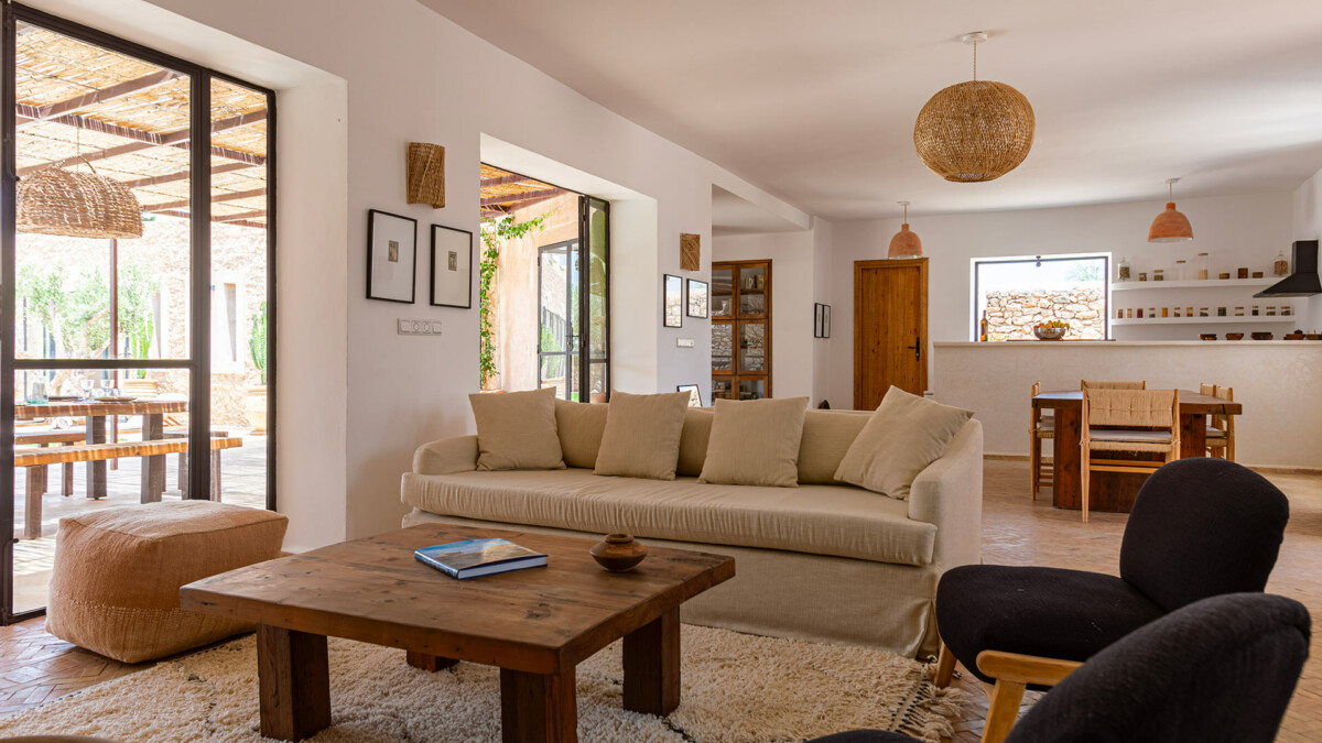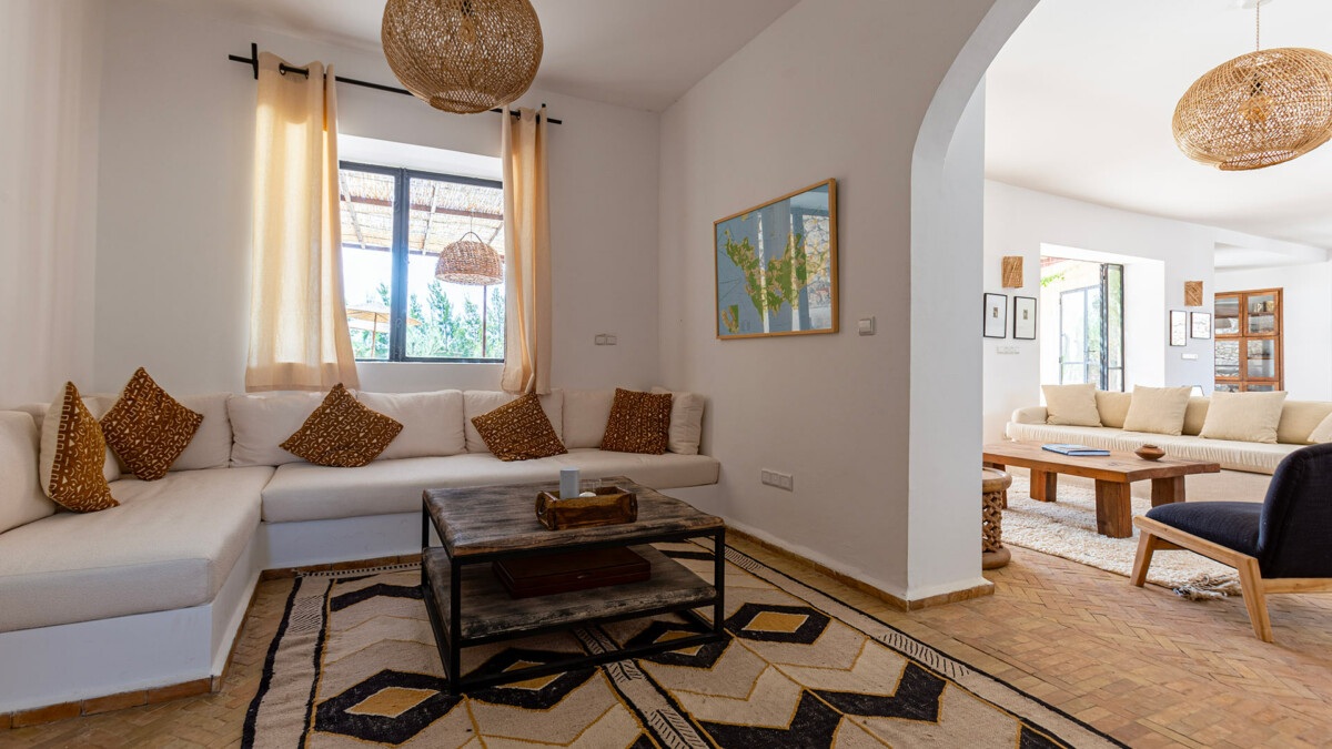 La maison a été superbement rénovée en 2024 par des professionnels de la décoration. Les espaces de vie sont clairs, confortables et propices à la convivialité. Le grand salon avec cheminée adopte un style “beldi chic”, chaleureux et moderne. L’espace salle à manger et sa cuisine américaine équipée permettent de partager des moments gourmands en toute convivialité. Un salon TV séparé, offre un espace détente supplémentaire. L’ensemble des espaces communs s’ouvre largement sur l’extérieur et invite à la vie dedans-dehors.