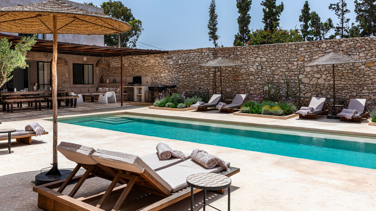 Dar Gustavia est une adresse de charme fraîchement rénovée aux portes d’Essaouira, idéale pour des séjours ressourçants en famille ou entre amis. Cette villa de style beldi chic combine raffinement marocain et confort haut de gamme. Avec ses quatre suites, ses intérieurs conviviaux, sa vaste terrasse et sa piscine pouvant être chauffée, elle promet intimité, sérénité et art de vivre à la marocaine. Cette demuere est parfaite pour un délicieux séjour, non loin des plages, du golf et de la médina d’Essaouira.