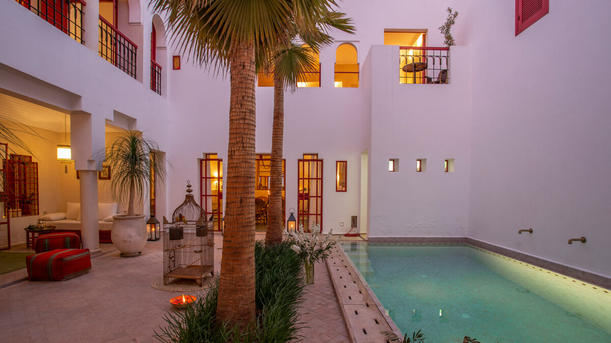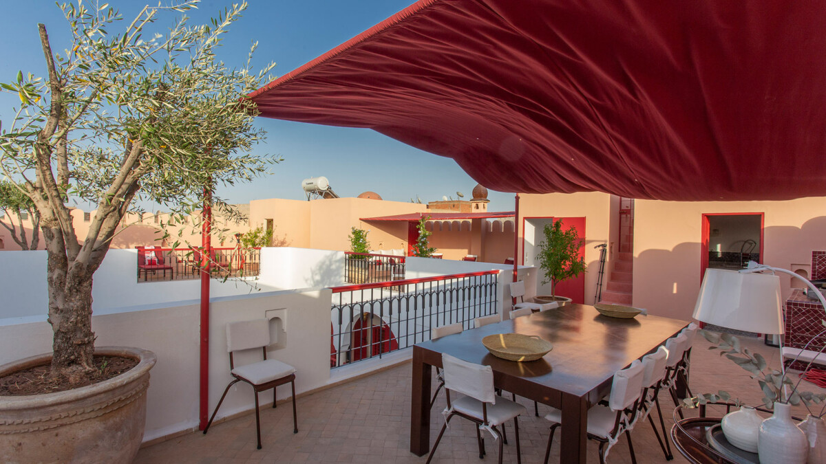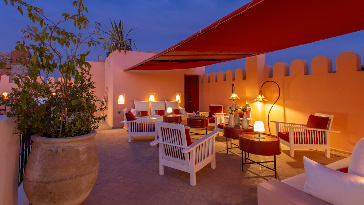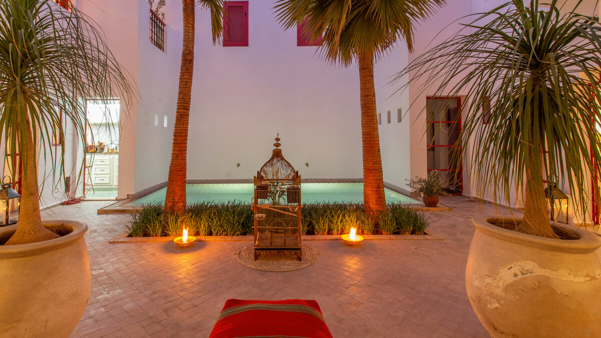 Dar Mayeul dispose d’une charmante cour intérieure avec piscine chauffée. Vous pourrez aussi profiter d’une terrasse sur le toit avec plusieurs coins salon ou de repos qui offrent des vues impressionnantes sur la médina de Marrakech, ainsi que d’une table pour déjeuner ou dîner.