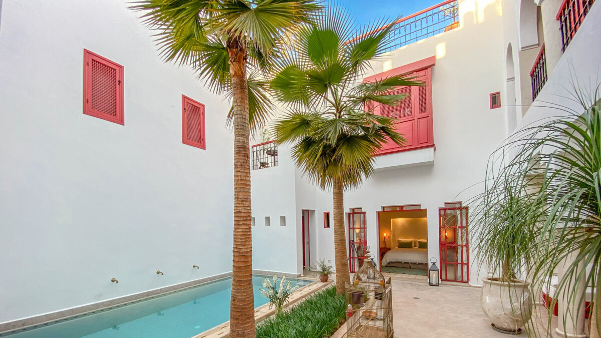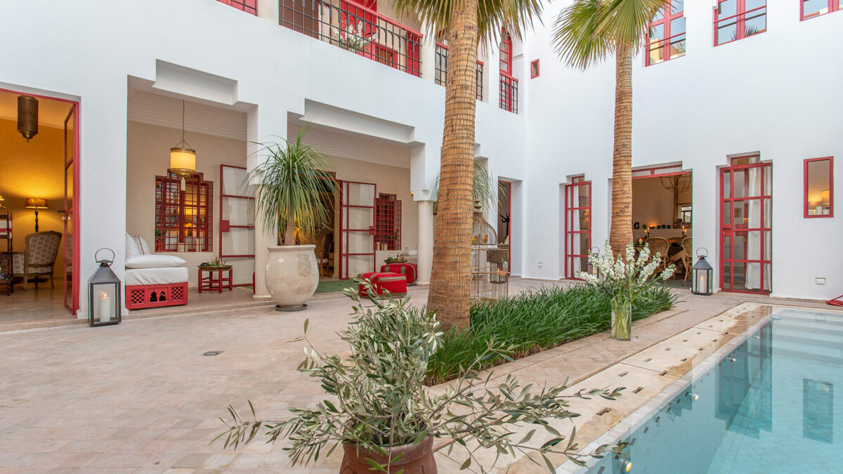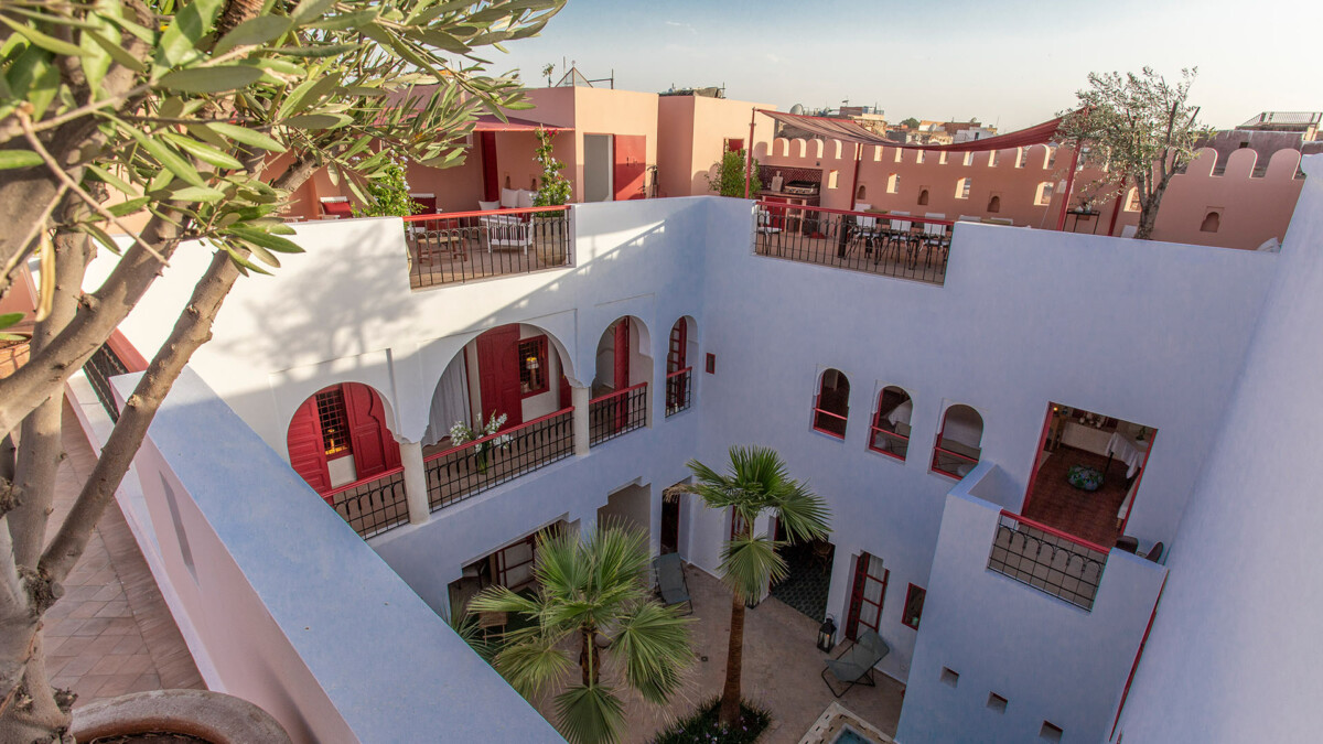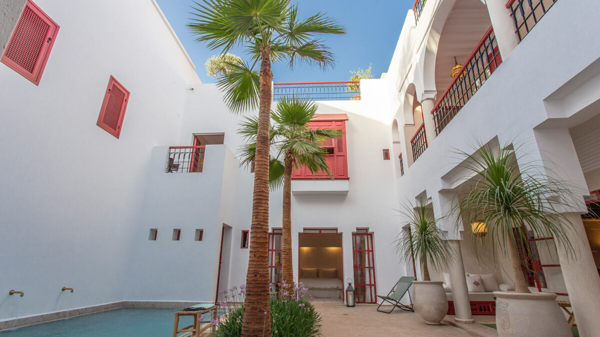 Dar Mayeul dispose d’une charmante cour intérieure avec piscine chauffée. Vous pourrez aussi profiter d’une terrasse sur le toit avec plusieurs coins salon ou de repos qui offrent des vues impressionnantes sur la médina de Marrakech, ainsi que d’une table pour déjeuner ou dîner.