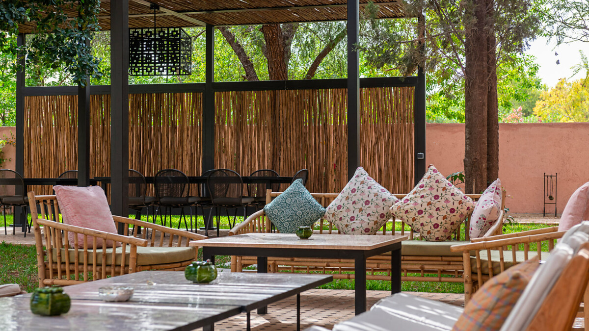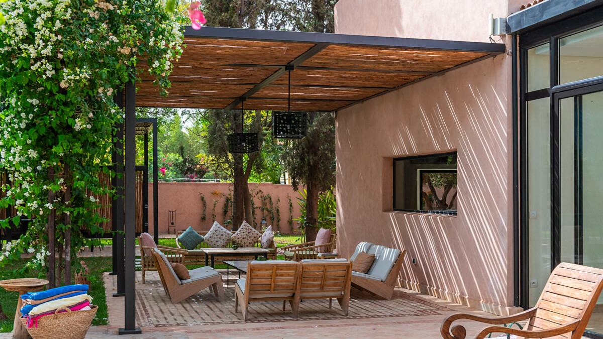 Vous retrouverez notamment un charmant salon ombragé, un kiosque/salle à manger, un barbecue, ainsi qu’un roof top aménagé, idéal pour admirer le coucher du soleil et la vue sur l’Atlas.