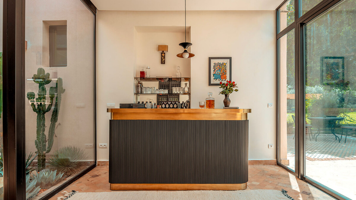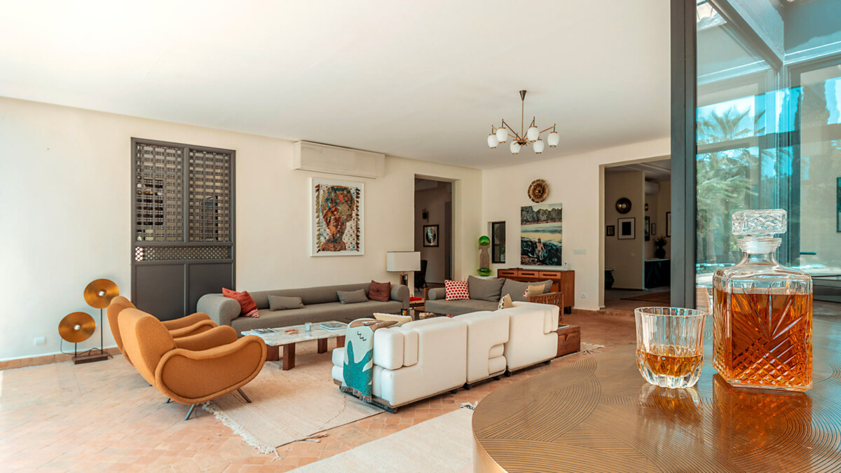 La maison est grandement personnalisée et dispose de beaux et confortables intérieurs, à la décoration soignée. Eléments issues de l’artisanat marocain, antiquités et meubles contemporains, ont été harmonieusement associés, conférant ainsi à la demeure une atmosphère contemporaine et raffinée.