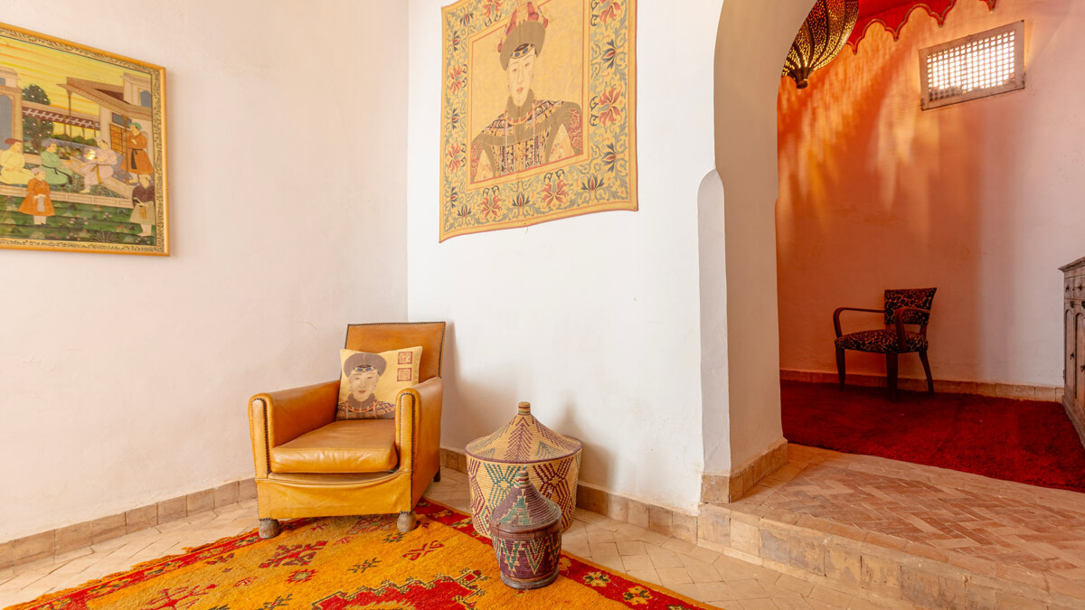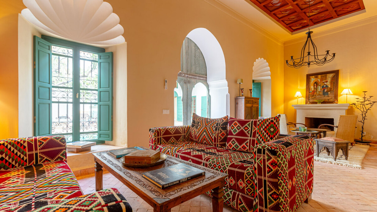 Le rez-de-chaussée du riad s’ouvre sur un salon chaleureux, où une cheminée accueillante invite à des soirées de détente. À cet étage, vous trouverez également une cuisine fonctionnelle (accessible uniquement au personnel).