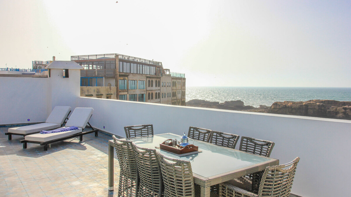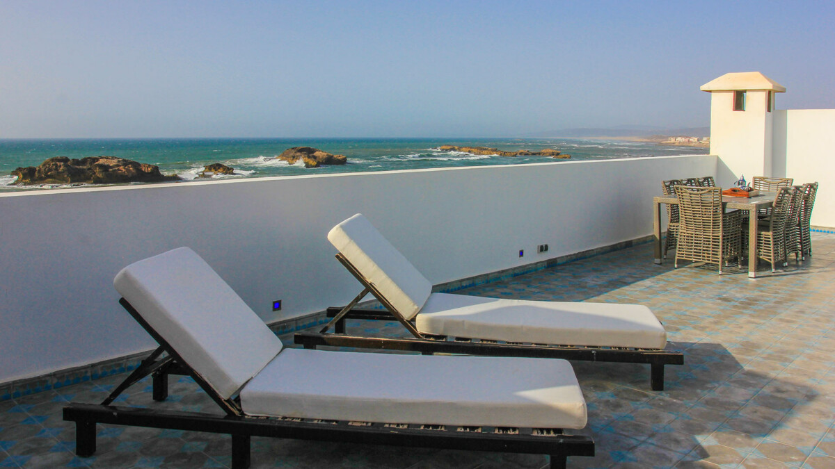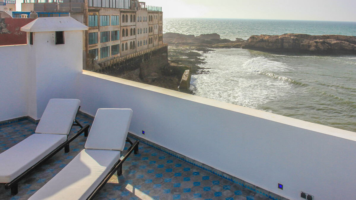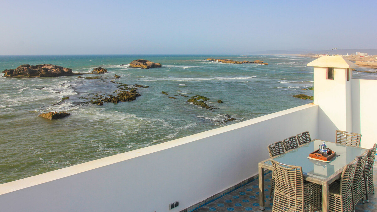 Ce grand riad est situé au coeur de la medina de Essaouira, au pied des remparts avec une vue directe à 180 degrés sur l’océan depuis chaque étage et la terrasse sur le toit. La situation est idéale, à 5 minutes de marche du Taros et à 5 minutes de Bab Marrakech.
