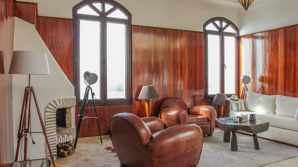 – Salon avec cheminée, vue sur l’océan