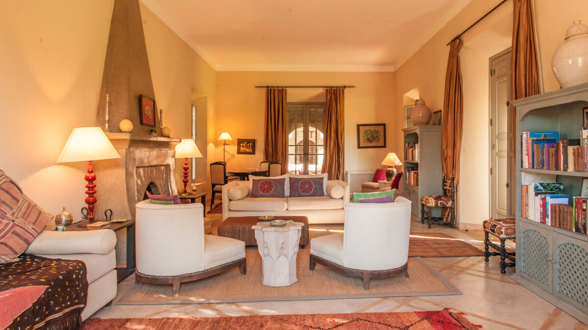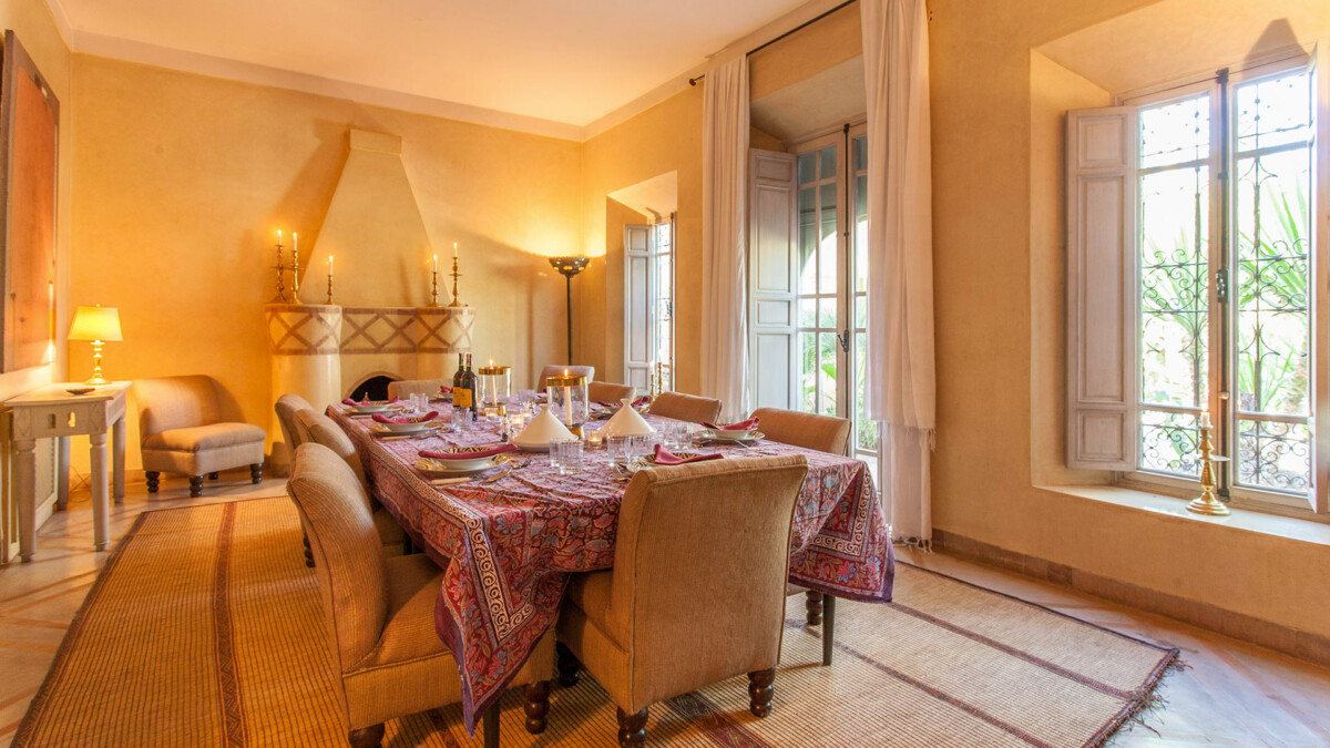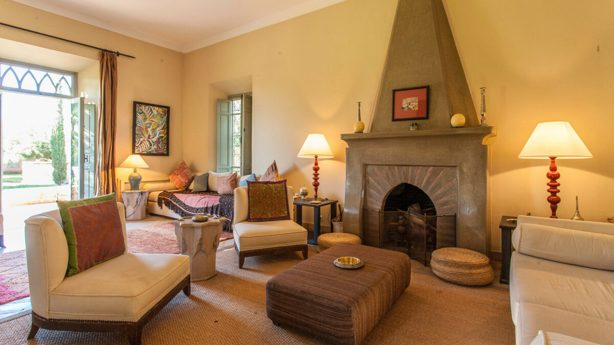 Dar Tola comporte également un salon avec cheminée, une salle à manger avec cheminée, un salon extérieur couvert, des terrasses et des coins repas dans le jardin.
