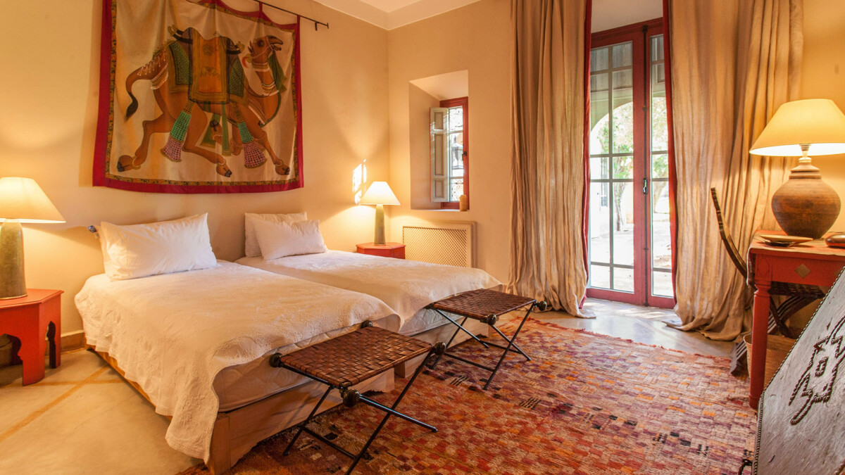 Chambre, Rez de jardin. La chambre propose 1 lit double transformable en lits twin. Salle de bain attenante. La chambre inclut également : terrasse privée.