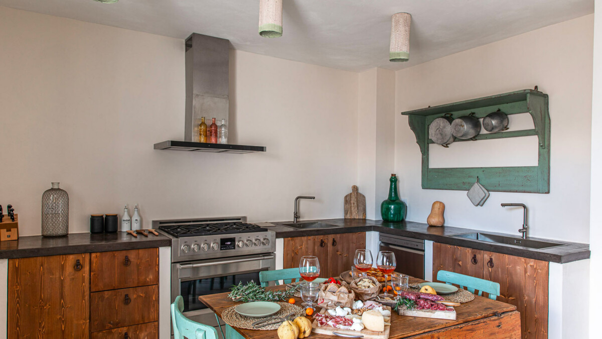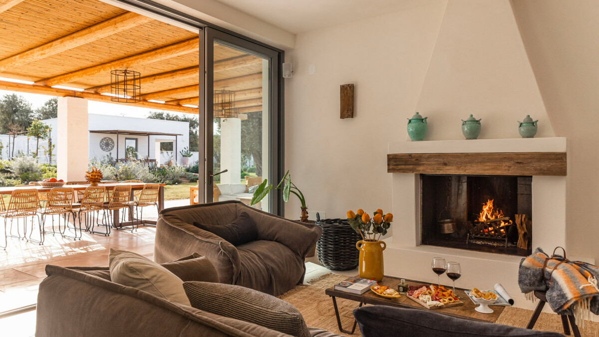 L’intérieur est une invitation à la convivialité et au bien-être. Le salon et la salle à manger ouverts forment un espace idéal pour se réunir, avec une grande table en bois rustique pour des dîners mémorables et un coin salon confortable près de la cheminée pour des soirées cinéma en famille. La cuisine ne manque pas de charme avec sa table de petit-déjeuner accueillante. Les six chambres, réparties entre la villa principale et une dépendance, sont chacune dotée de sa propre salle de bain, offrant intimité et confort.