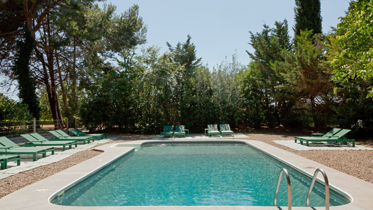 – Piscine extérieure (12 x 6m) avec transats, pelouses et arbres centenaires.