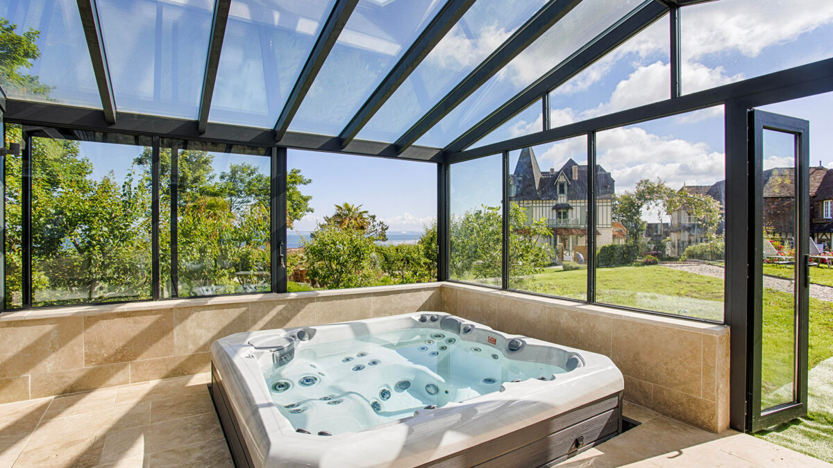 - Piscine chauffée sous serre : cette piscine unique permet de nager tout au long de l’année, protégée des éléments tout en conservant une vue magnifique sur les environs.