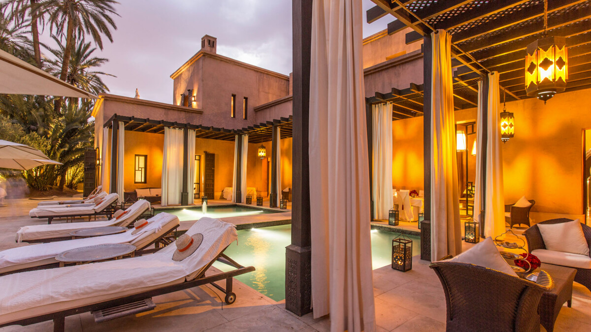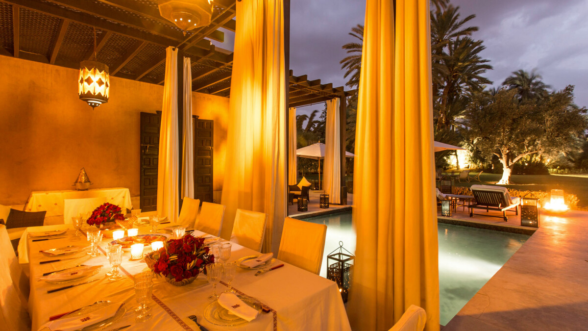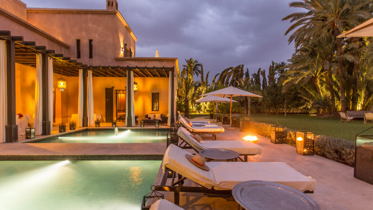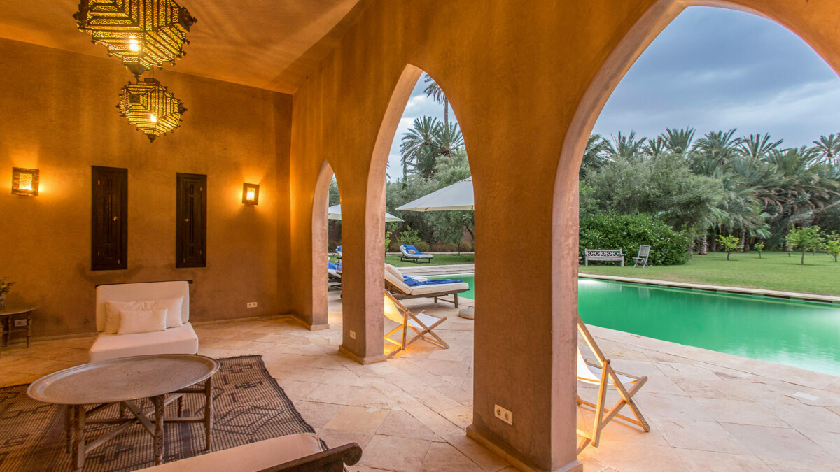 El Jenna Palmeraie est une luxeuse villa située au coeur d’un jardin somptueux dans la Palmeraie de Marrakech. La propriété se trouve à 15 minutes du centre ville de Marrakech. La villa comporte 8 belles suites, 1 chambre double d’appoint et 1 chambre pouvant acceuillir jusqu’à 6 enfants. La villa offre un luxe d’équipements : Tennis, spa privé, salle de cinéma, piscine chauffée ainsi que du personnel de maison qualifié qui vous offre la garantie d’un séjour avec beaucoup d’attention et d’une cuisine exceptionnelle.