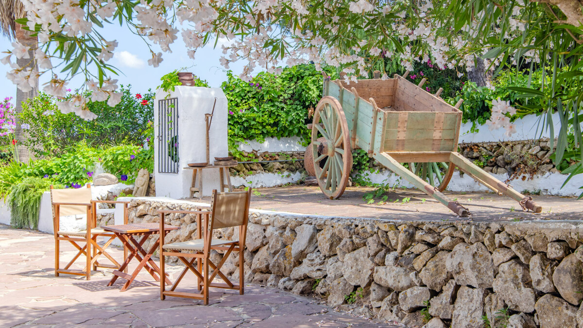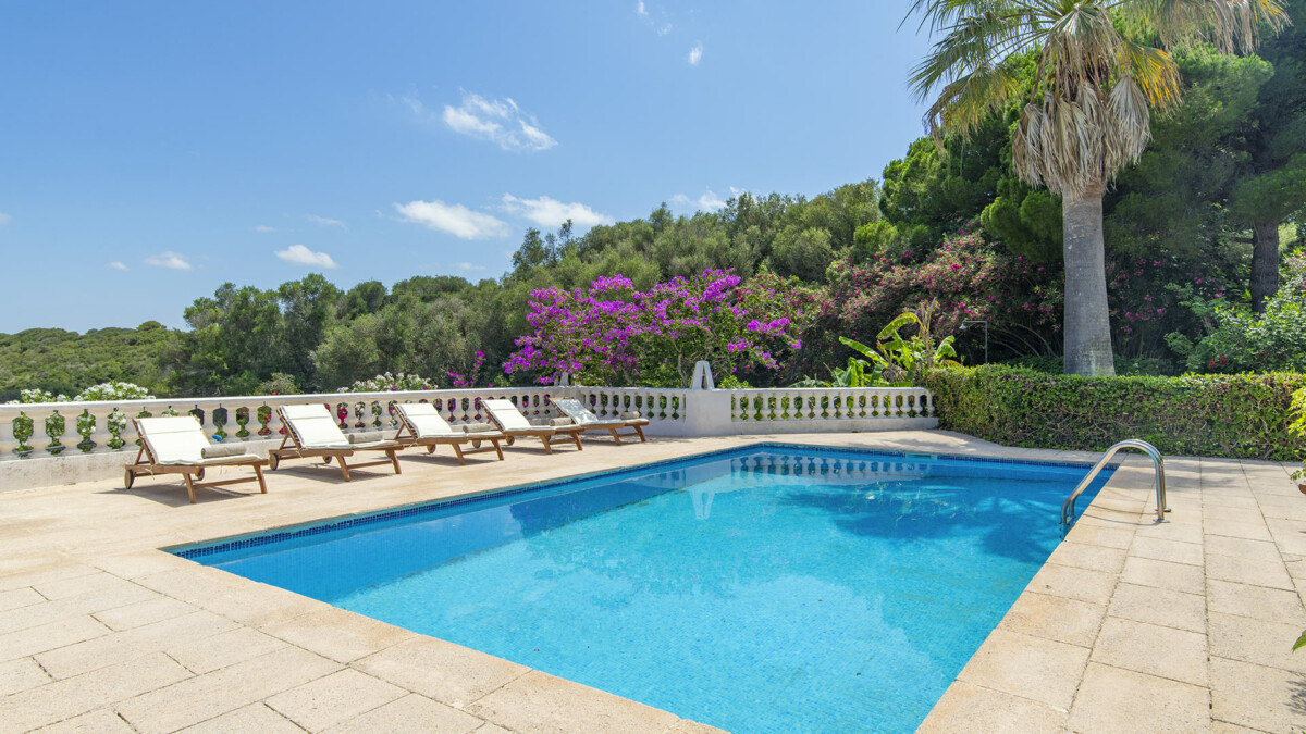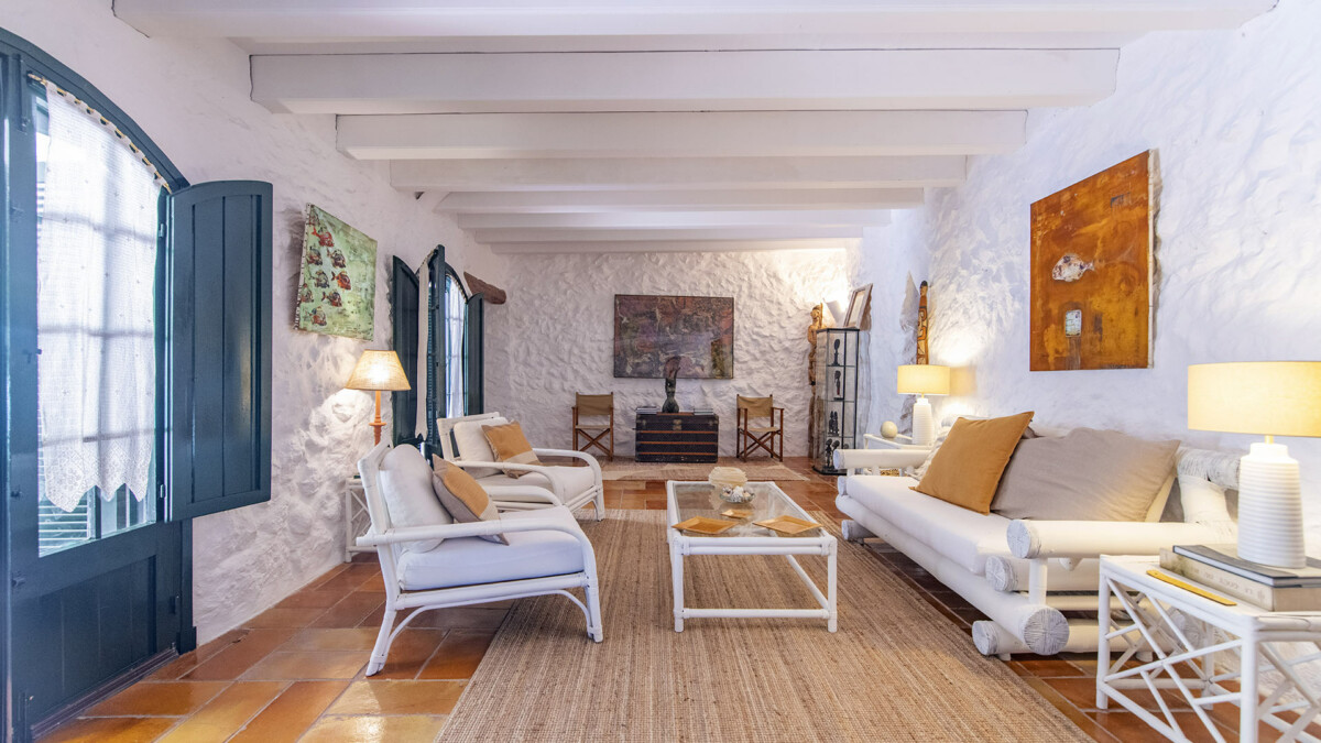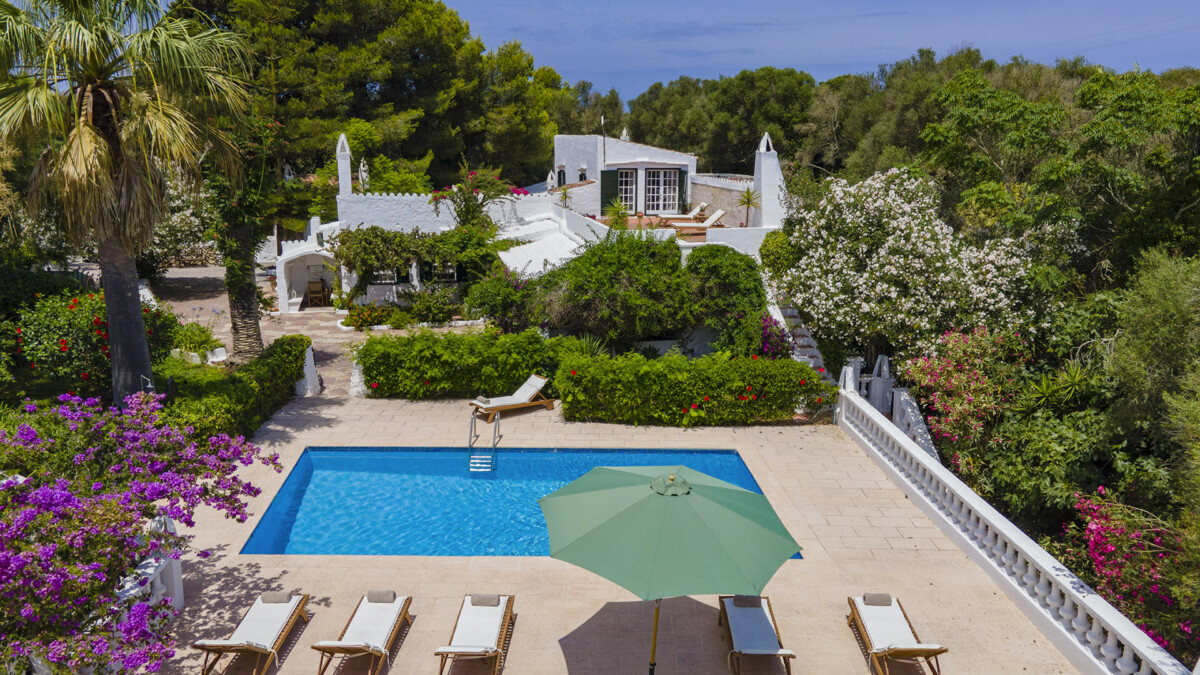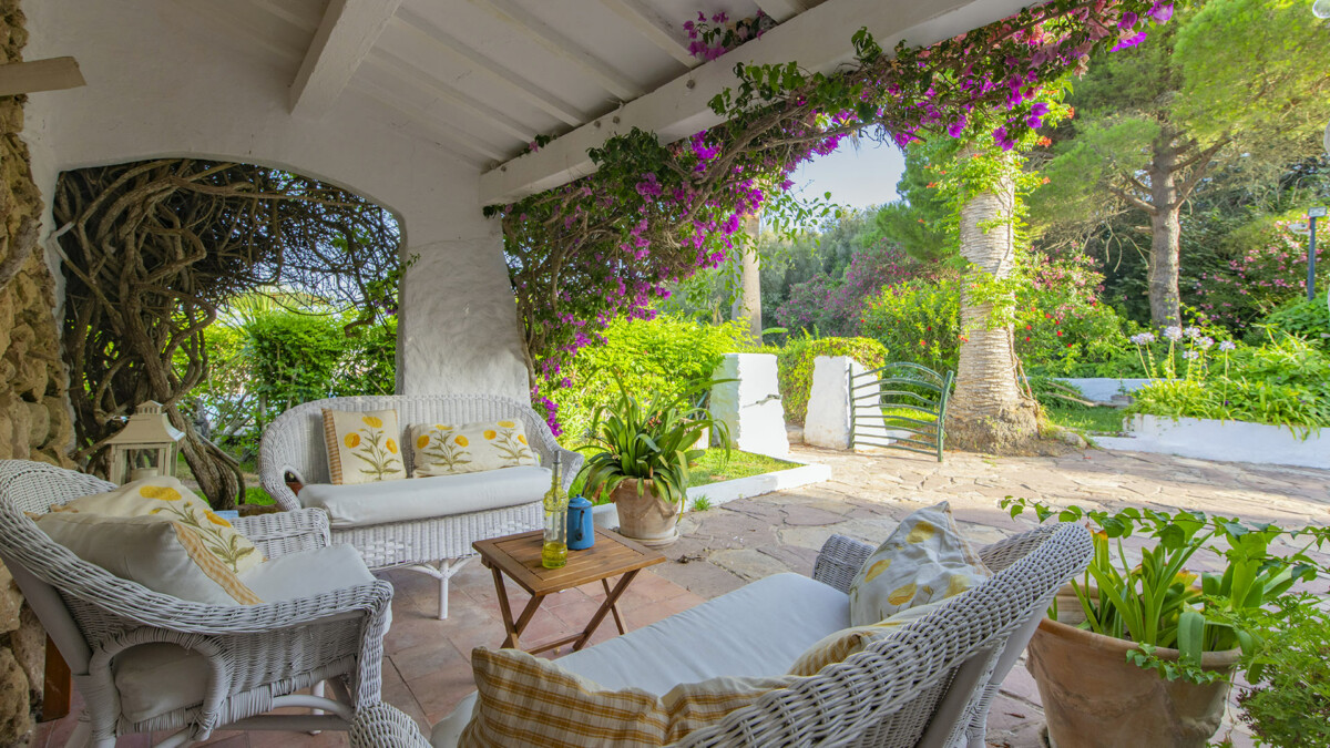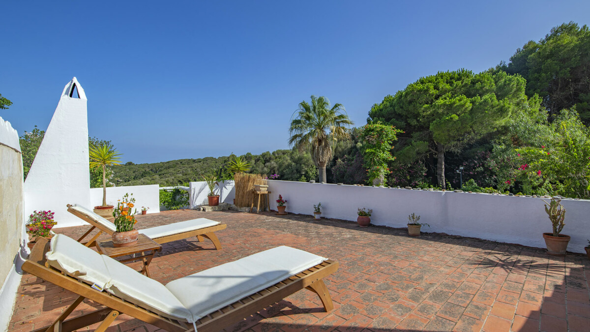 Les extérieurs conservent un aspect plus traditionnel, typique d’une finca minorquine, tout en offrant des espaces bien entretenus.