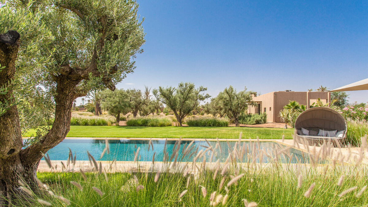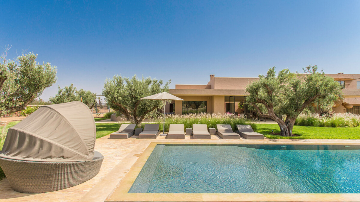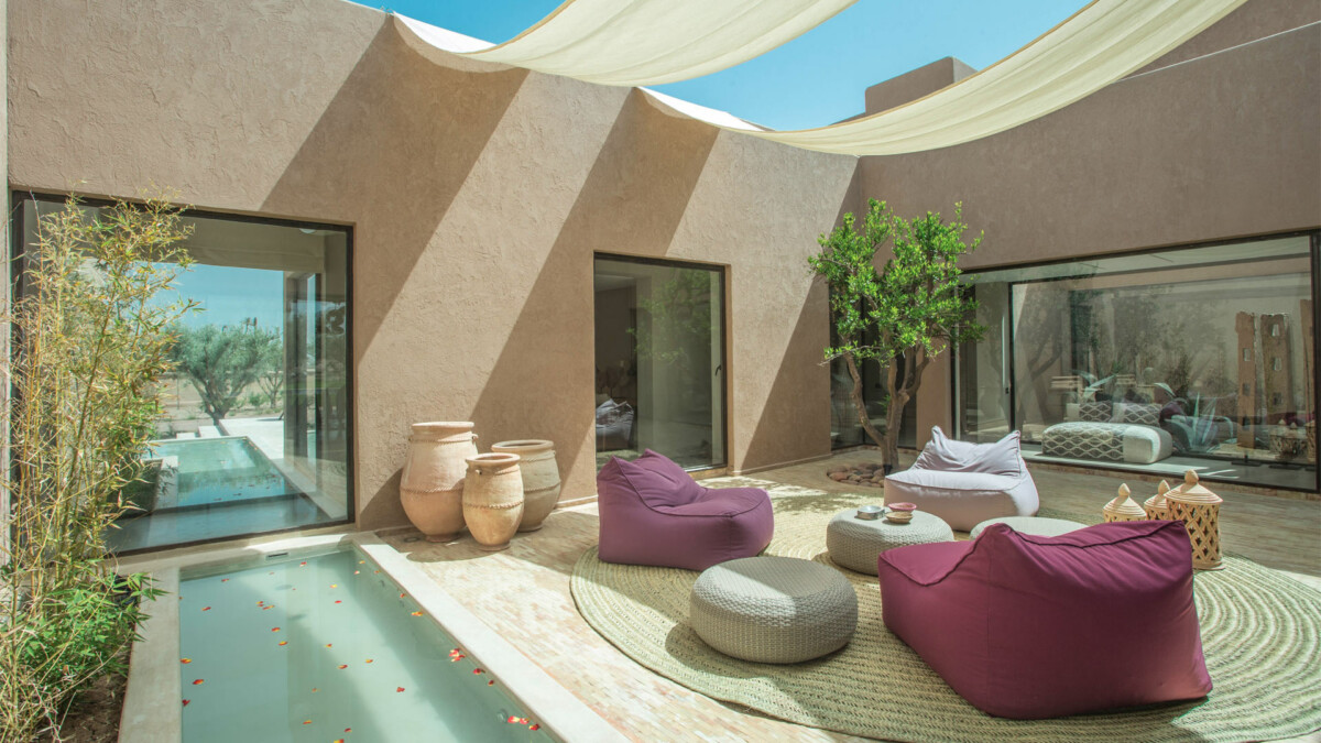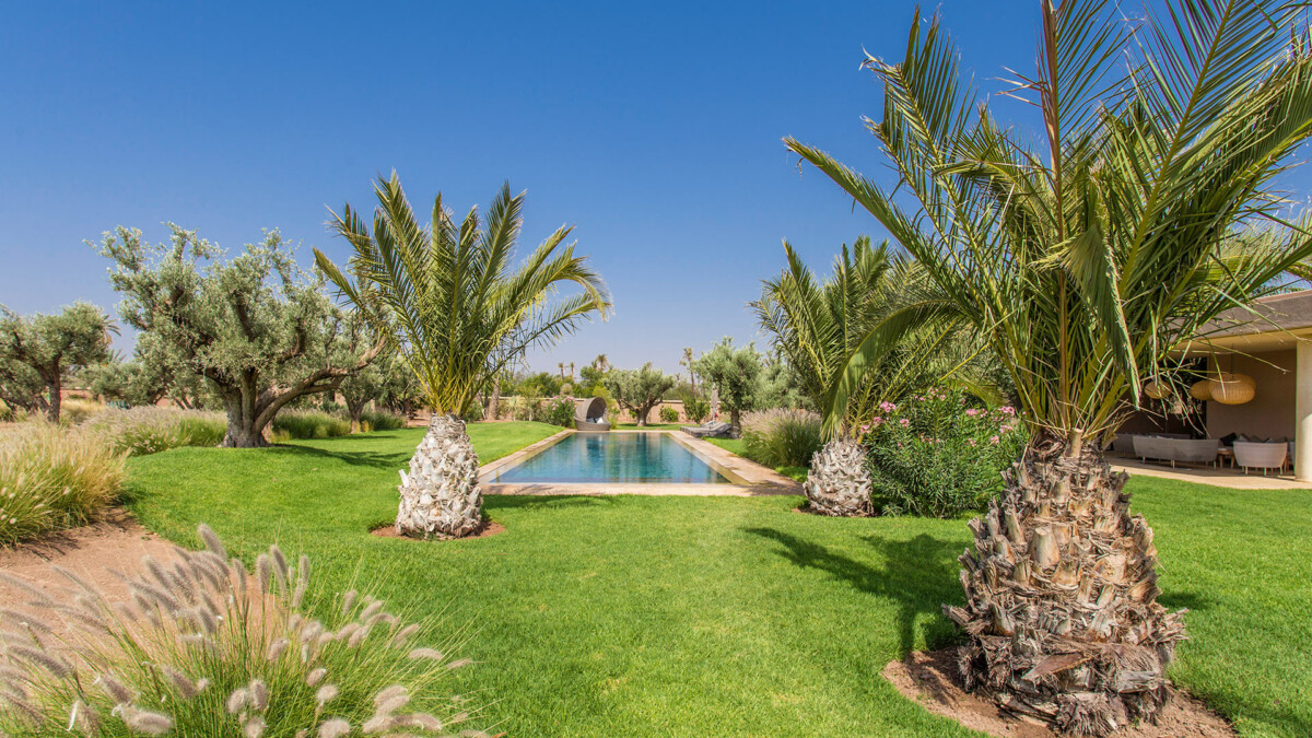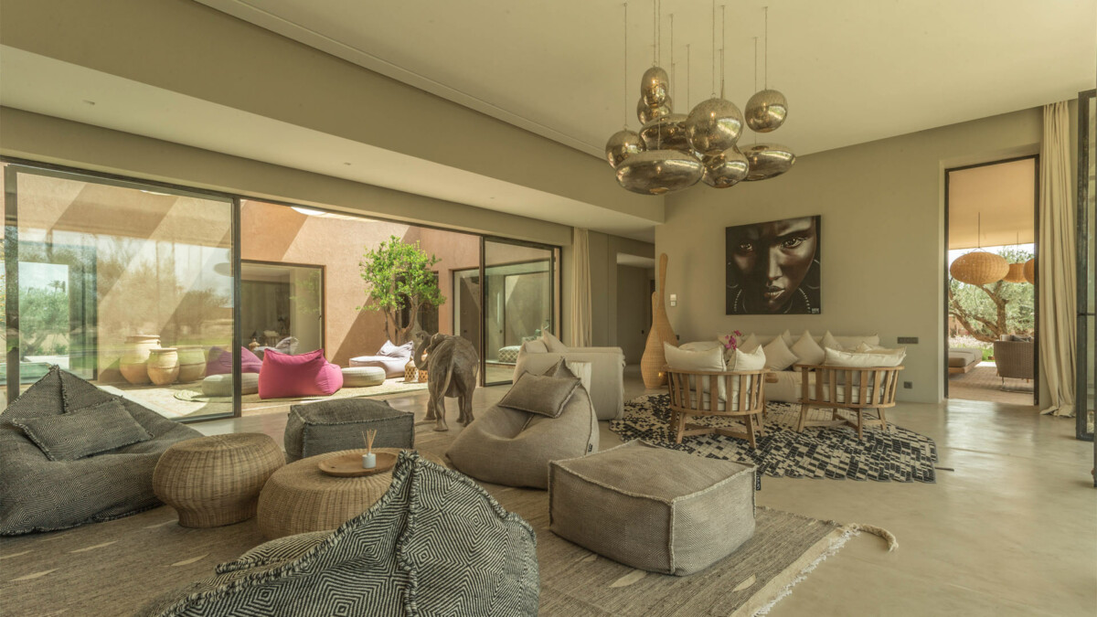 La maison propose 1000 m2 d’espaces habitables sur 2 hectares de terrain clos de murs à proximité du Palais Ronsard, le Relais et Chateaux de la Palmeraie.