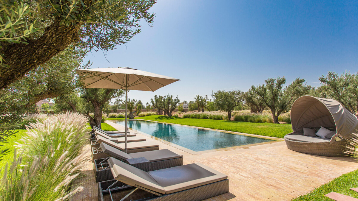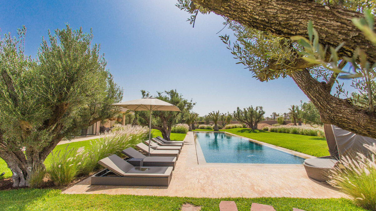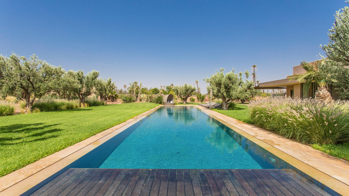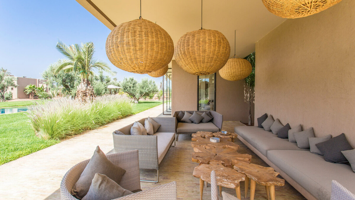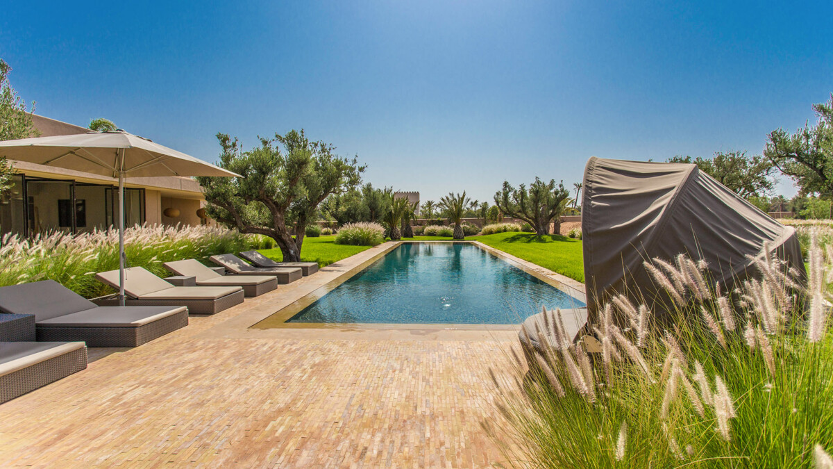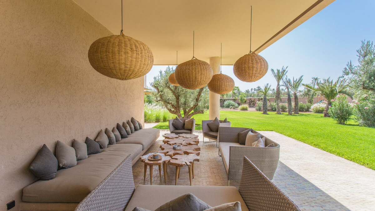 La maison propose 1000 m2 d’espaces habitables sur 2 hectares de terrain clos de murs à proximité du Palais Ronsard, le Relais et Chateaux de la Palmeraie.