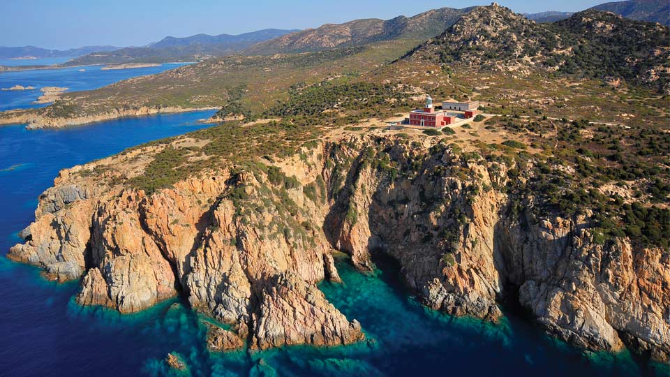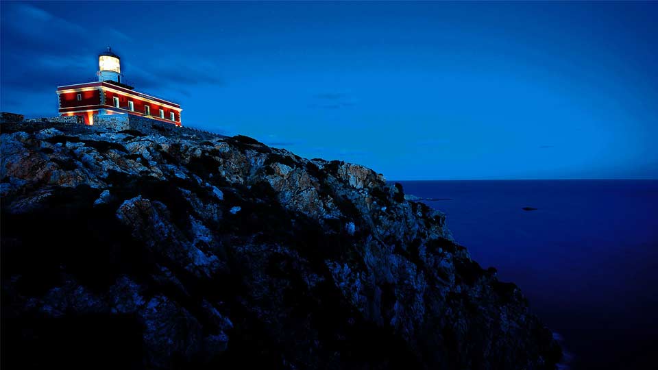 Ceci est la pointe sud de l’île: une zone complètement sauvage et non polluée, sans autres bâtiments, couverts par des buissons typiques de la Méditerranée, et entourée de belles plages de sable blanc. Un chemin de terre mène au phare secondaire en haut de la falaise au-dessus de la mer.