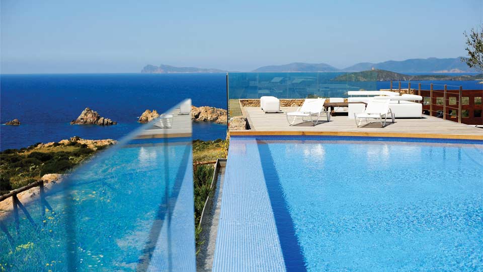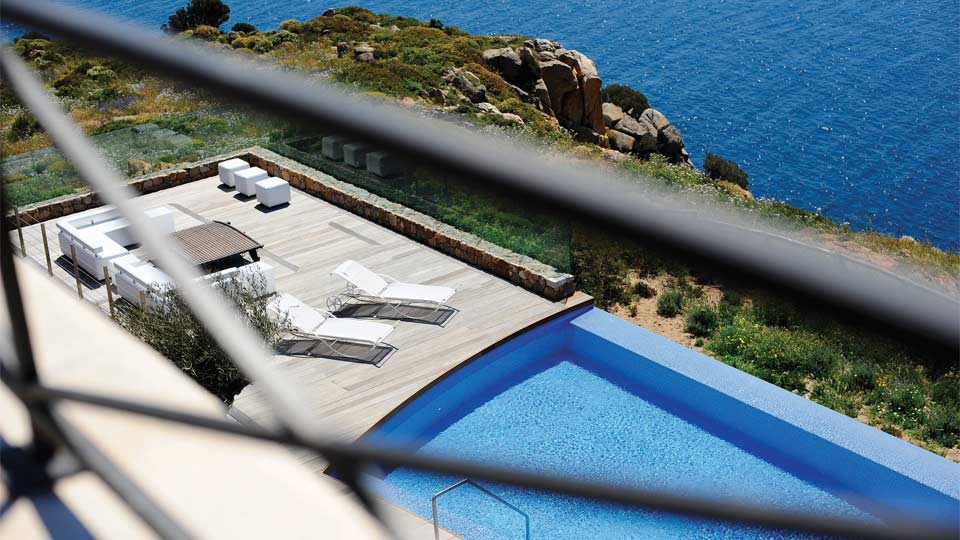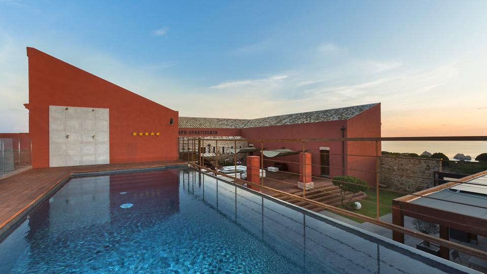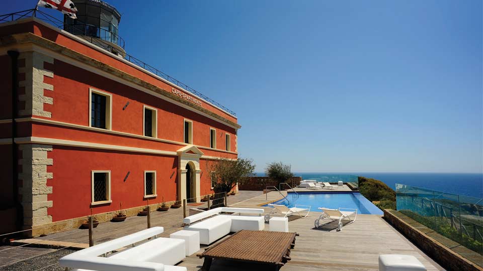 La propriété est située à 50 km de l’aéroport d’Elmas et de la ville de Cagliari, sur un promontoire appelé Capo Spartivento, dans le domaine de Chia.