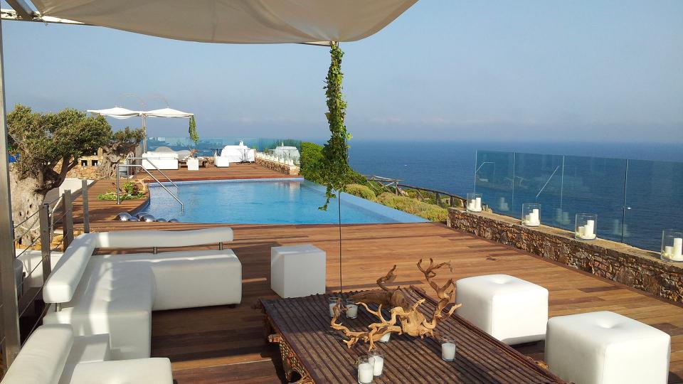 D’ élégants canapés en cuir blanc avec 4 parasols blancs créent une zone où il est possible de prendre le petit déjeuner ou un thé dans l’après-midi, ou pour profiter d’un apéritif en face de l’immense mer ou admirer le coucher du soleil.