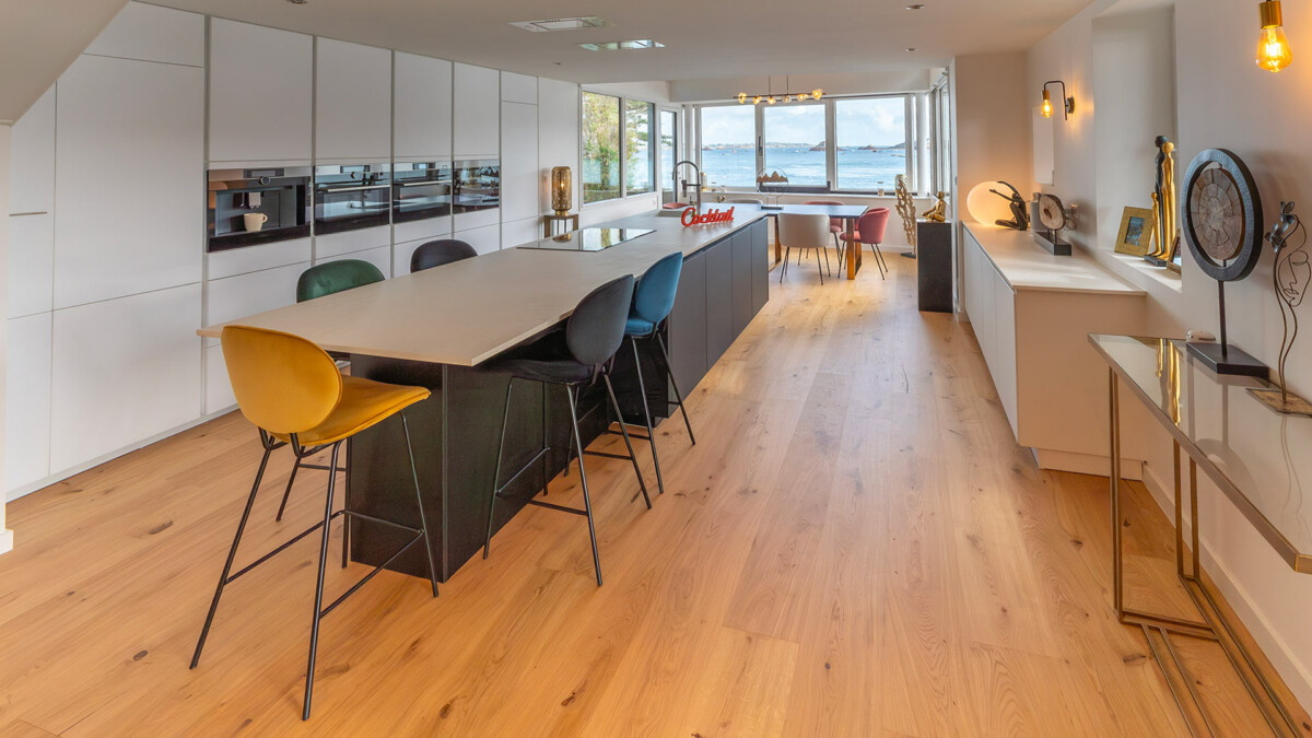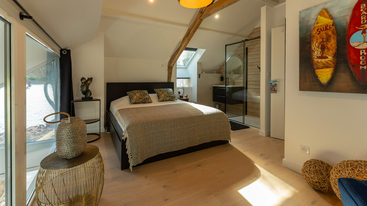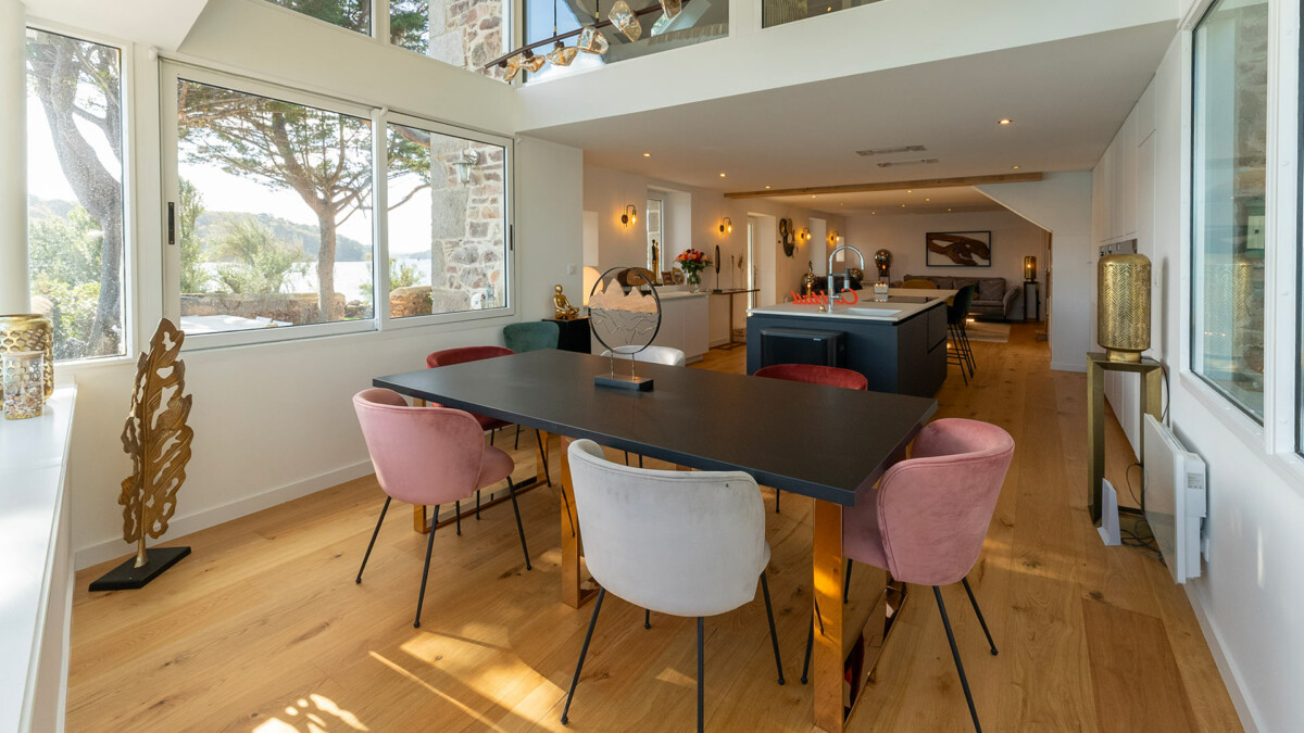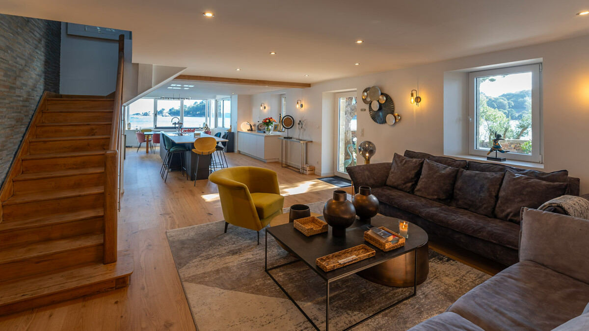 L’intérieur de la maison est un mariage subtil entre l’ancien et le nouveau. Décorée avec goût, la maison mêle des éléments de design bretons traditionnels avec des accents contemporains, créant un espace à la fois élégant et fonctionnel.