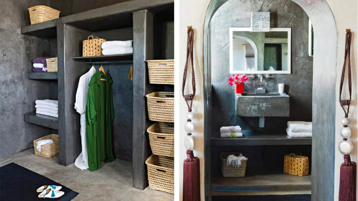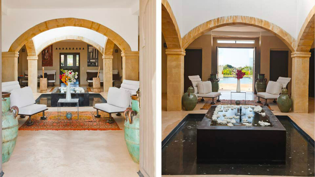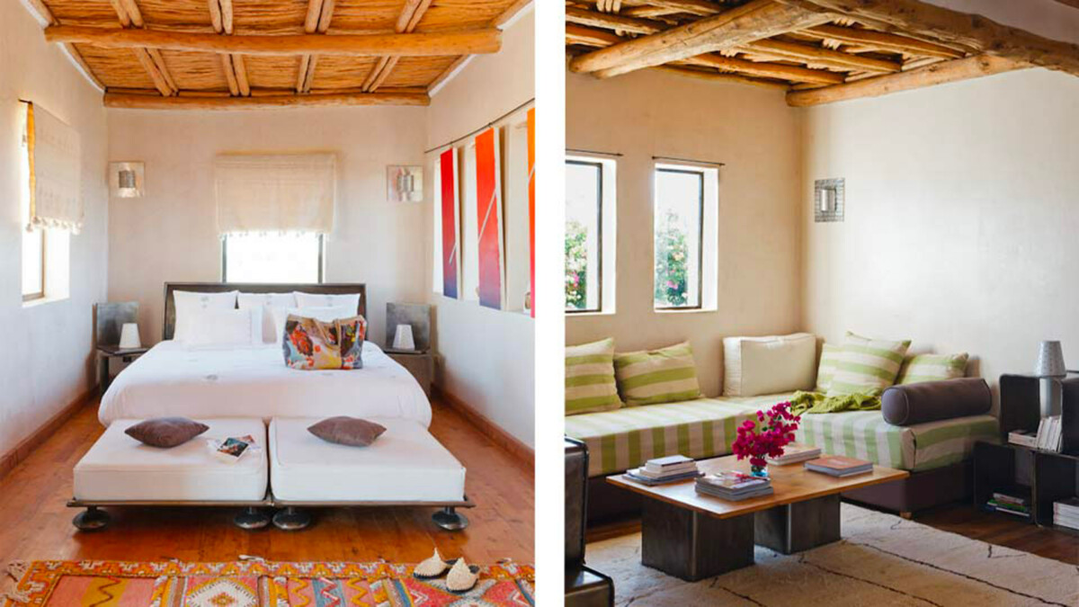 L’architecture de la maison est calquée sur celle des kasbahs marocaines mais les intérieurs ont été conçus et décorés de manière très contemporaine tout en faisant appel à des matériaux et des objets traditionnels.