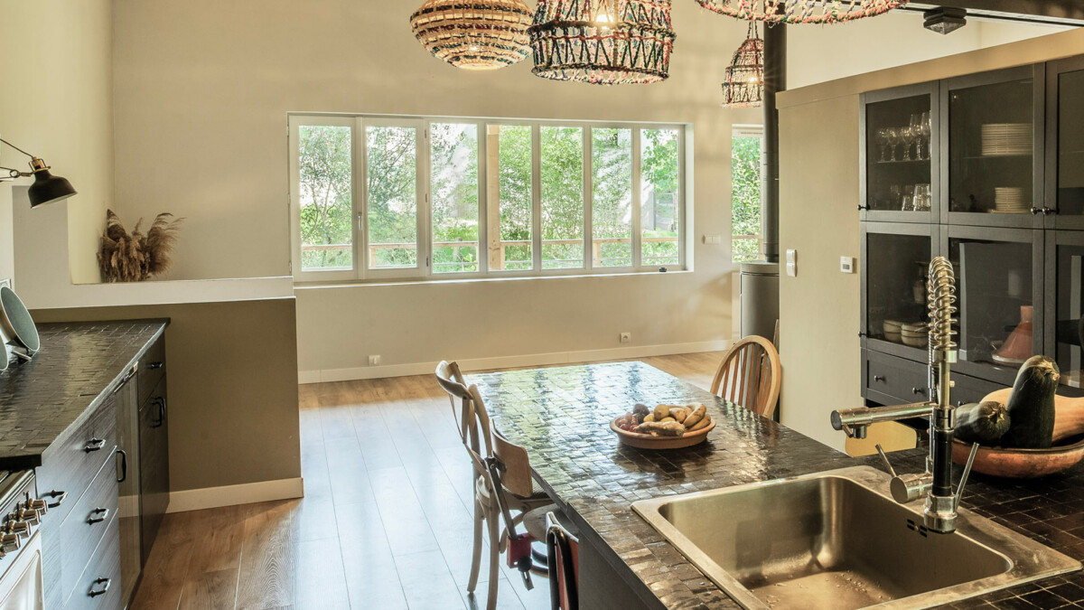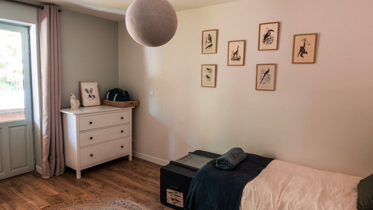 La partie nuit se compose de quatre chambres, dont une suite parentale au rez-de-chaussée avec dressing et salle d’eau privative. Les trois autres chambres, situées à l’orée du bois, partagent une salle de bain avec douche, baignoire et double vasque.