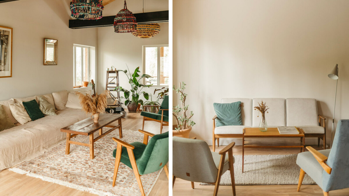 La décoration soignée mêle harmonieusement matières nobles et pièces chinées, dans un esprit bohème chic.