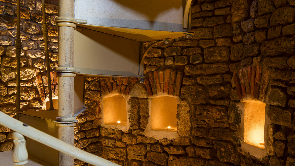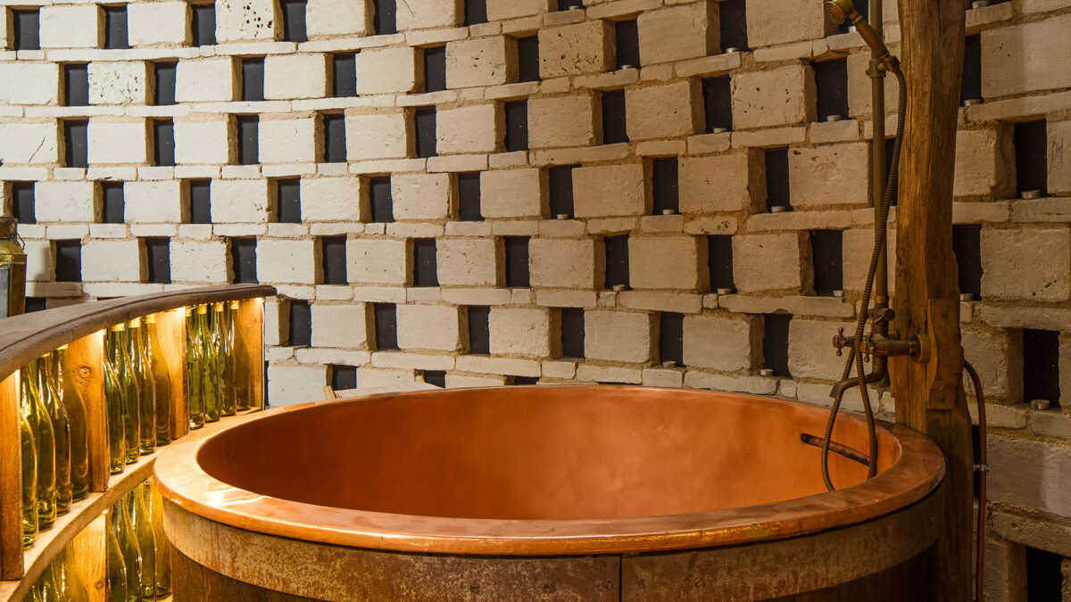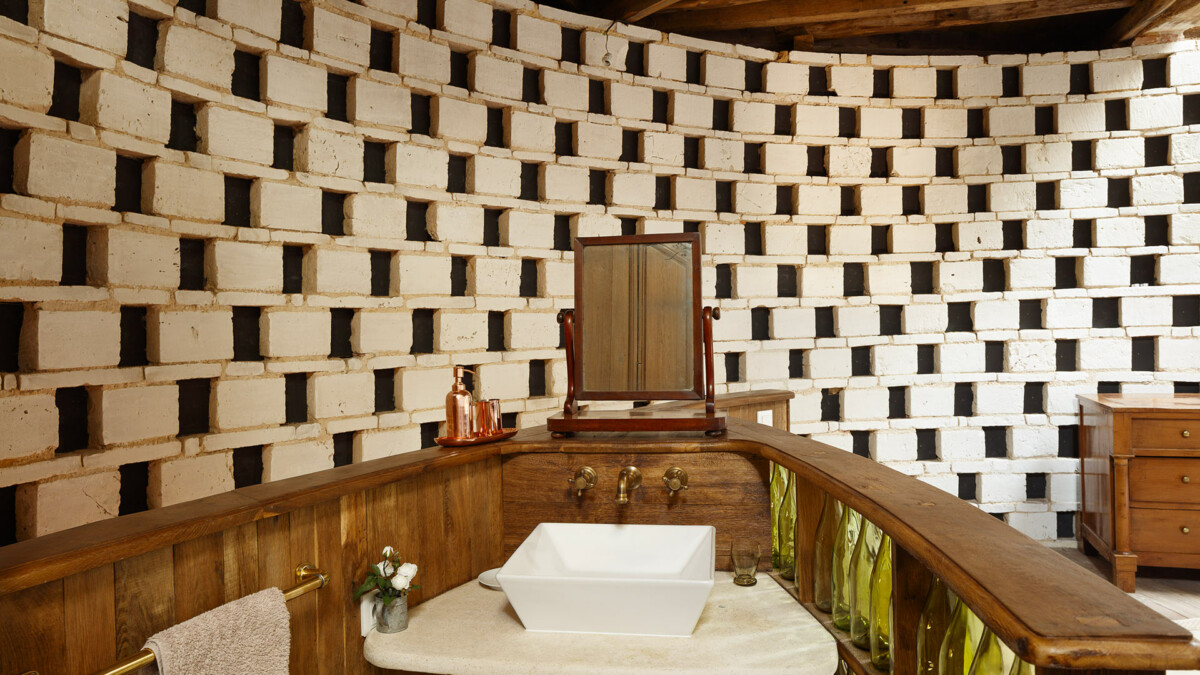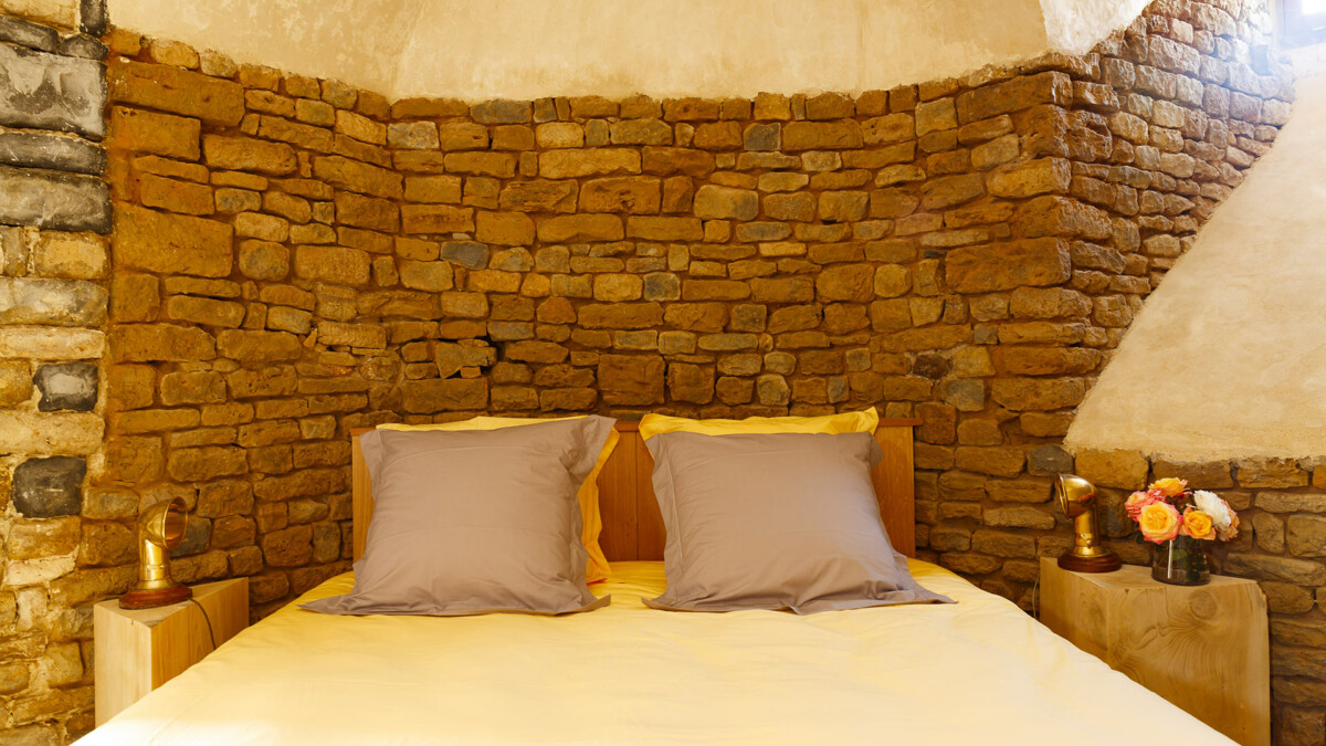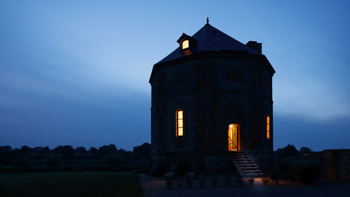 Sur les murs, plus de 2000 trous de boulin ayant servi autrefois de nichoir aux pigeons ont été intégralement conservés et restaurés. Dans cet endroit résolument extravagant et sensationnel aux allures de relais de chasse, la décoration aux couleurs chaudes contraste avec les murs faits de pierres et de briques, conférant au lieu une atmosphère profondément chaleureuse.