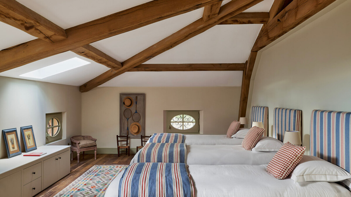 Room, 2nd floor. This bedroom has 4 single beds 90 cm. Bathroom shared, with bathtub, shower. WC are shared. This bedroom includes also air conditioning, TV.
