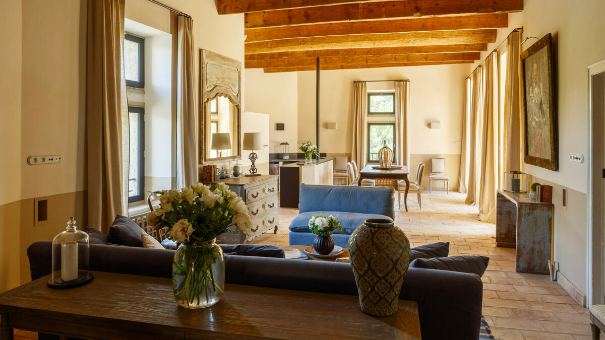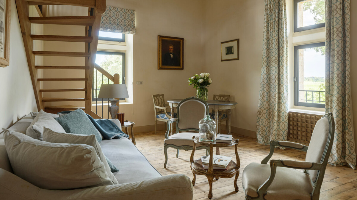 A l’intérieur, le moulin a été aménagé comme une grande maison de famille. Chaque étage peut cependant s’envisager indépendamment. Culminant une nature verdoyante, il constitue un refuge discret et privilégié pour vivre un séjour insolite en famille. Dans cette imposante demeure aménagée avec finesse et élégance, se côtoient la pureté et la patine des matériaux anciens, l’originalité des meubles et des objets chinés ainsi que le confort moelleux des meubles modernes. Toutes les fenêtres offrent un point de vue privilégié sur la beauté du site.