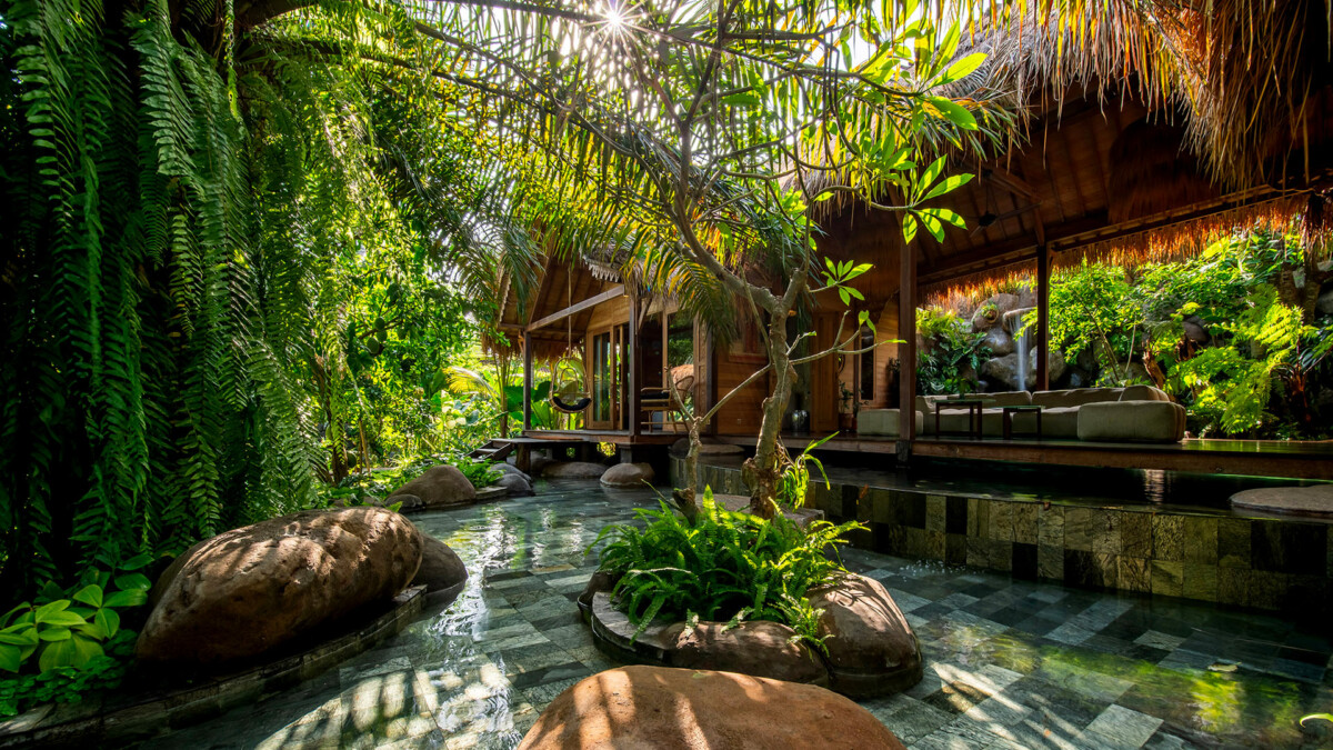 Le domaine révèle toute sa splendeur à travers ses espaces extérieurs, véritables invitations à une immersion sensorielle balinaise.