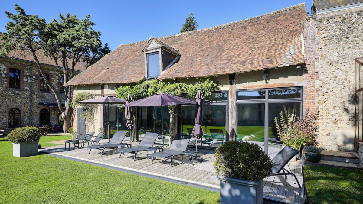 – Une première dépendance (400m2) accueillant un vaste salon de 100 m2 et une salle à manger de 70 m2 avec vue sur le jardin, une cuisine et une arrière-cuisine. On y trouve également trois chambres se partageant une même salle de bain.