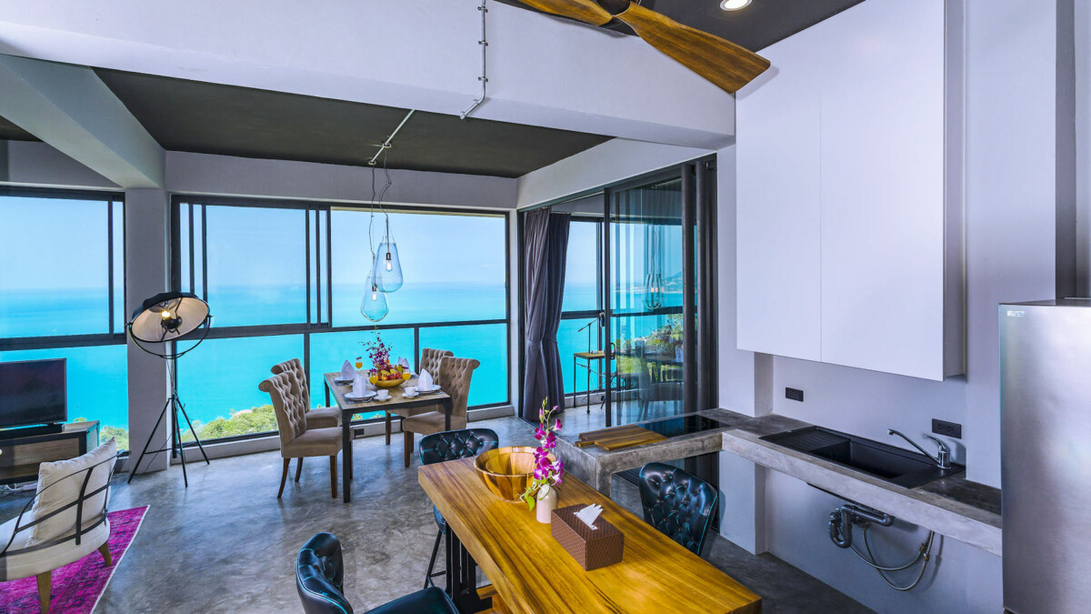 D’une surface de 120 m², vous trouverez un loft ouvert avec deux chambres séparées. Chaque chambre dispose d’une salle de bains avec douche, d’un dressing et d’un lit king-size confortable ou queen-size. La sensation de bien-être dans le salon avec balcon attenant est incroyable: le canapé design vous invite à vous détendre devant la télévision tout comme les sièges sur le balcon. La cuisine entièrement équipée avec vue sur la baie de Coral Cove à Chaweng laisse libre court à votre créativité. Vous pouvez également utiliser le service du personnel de maison qui se fera un plaisir de vous enseigner des recettes locales (un supplément est applicable).