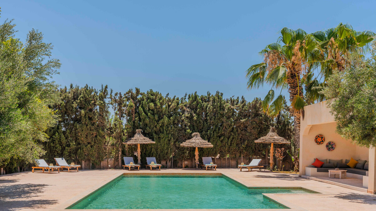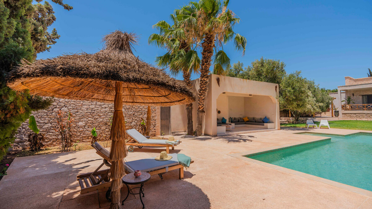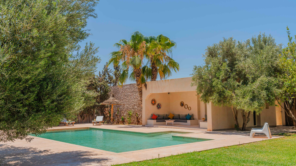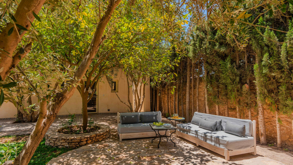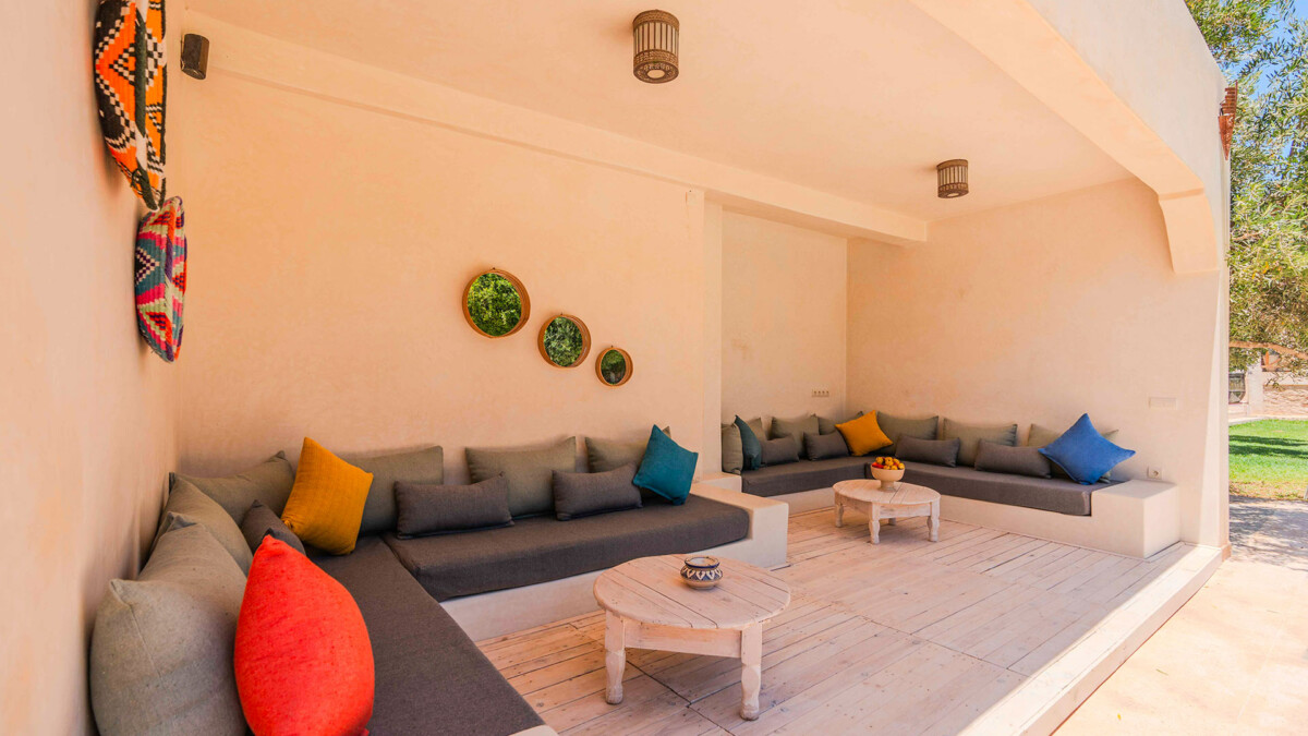 – Un salon marocain et sa terrasse privée face à la piscine.