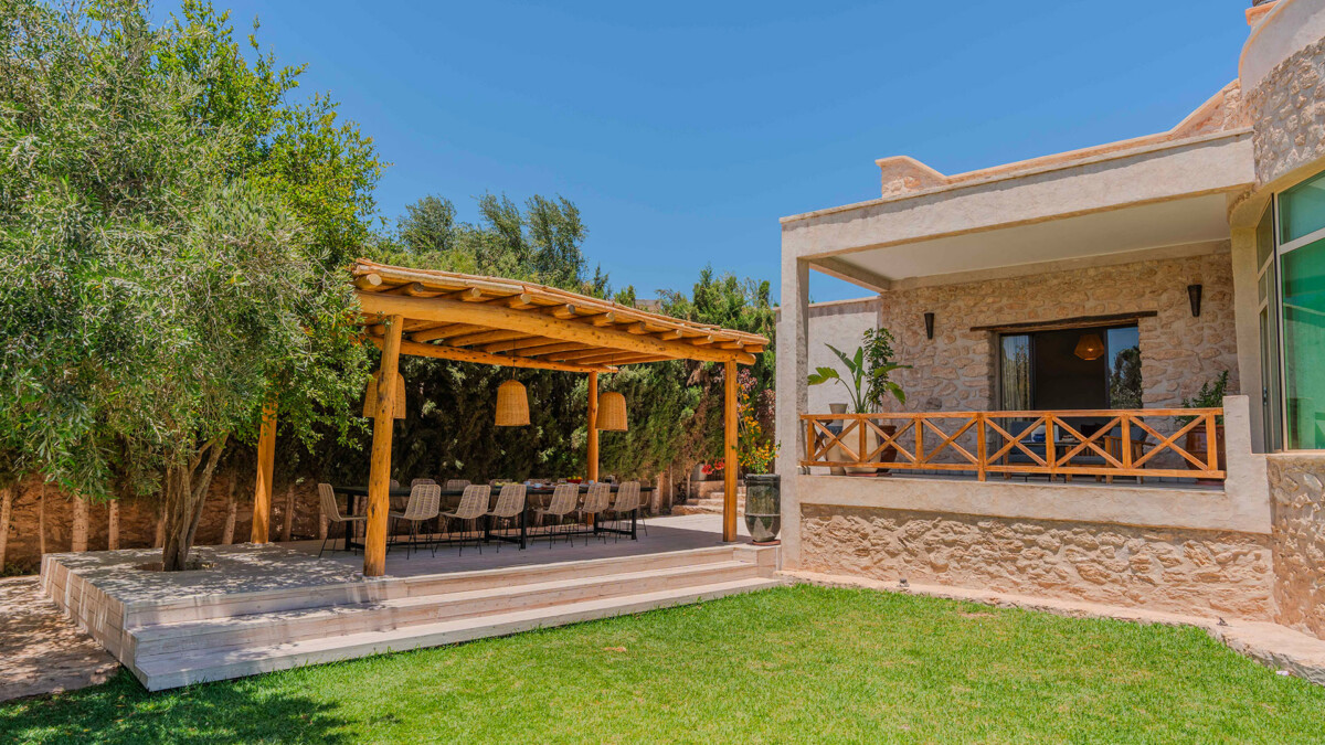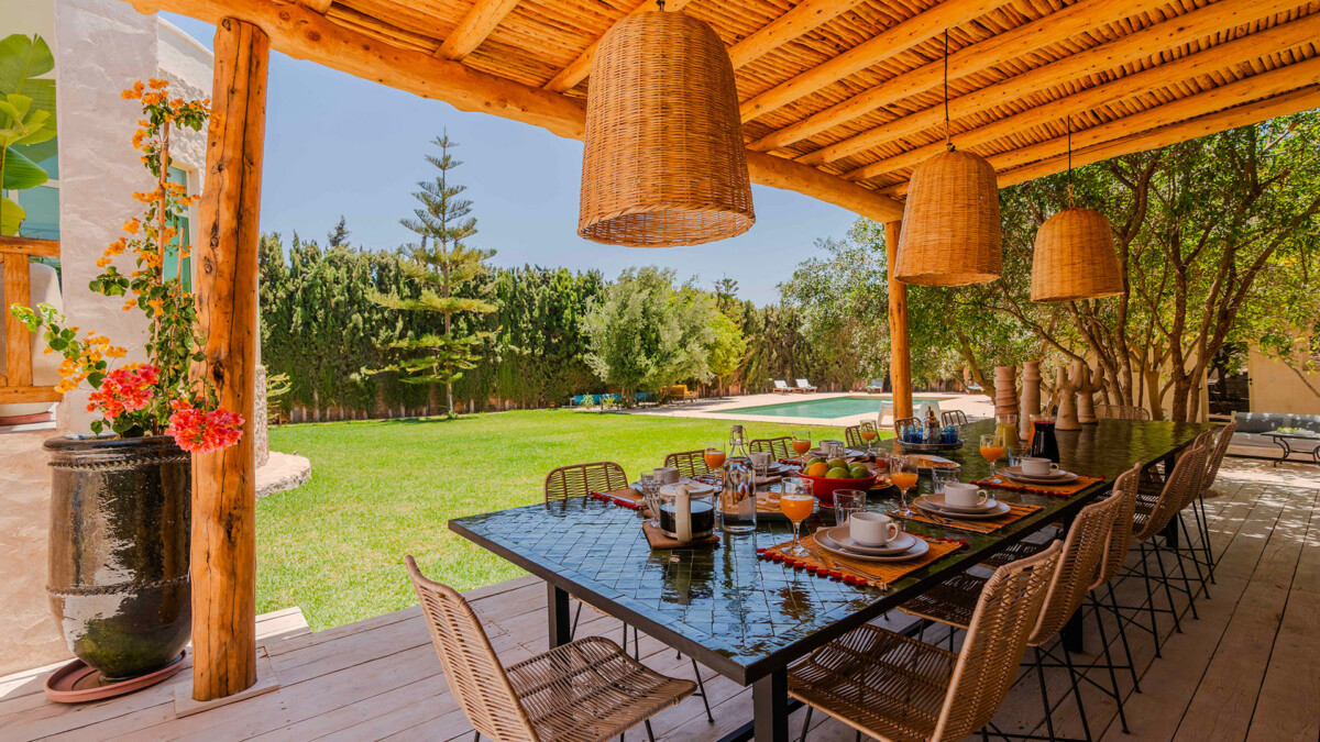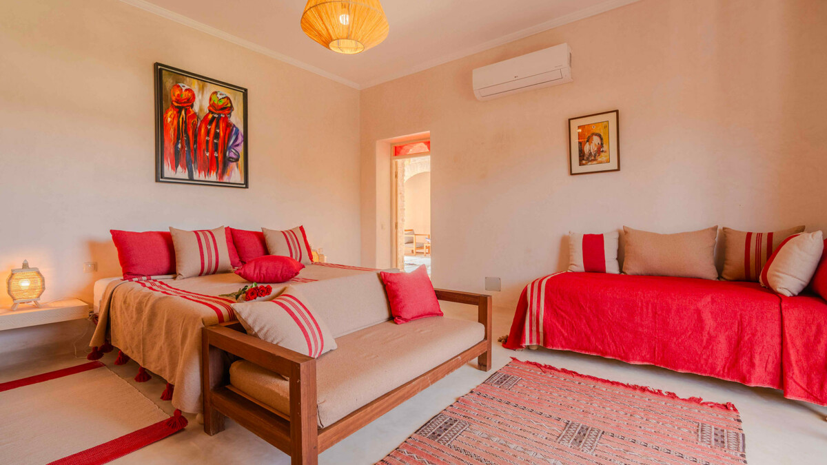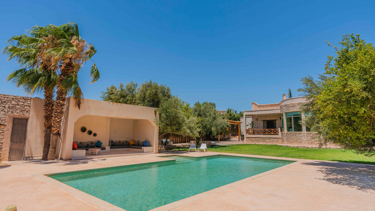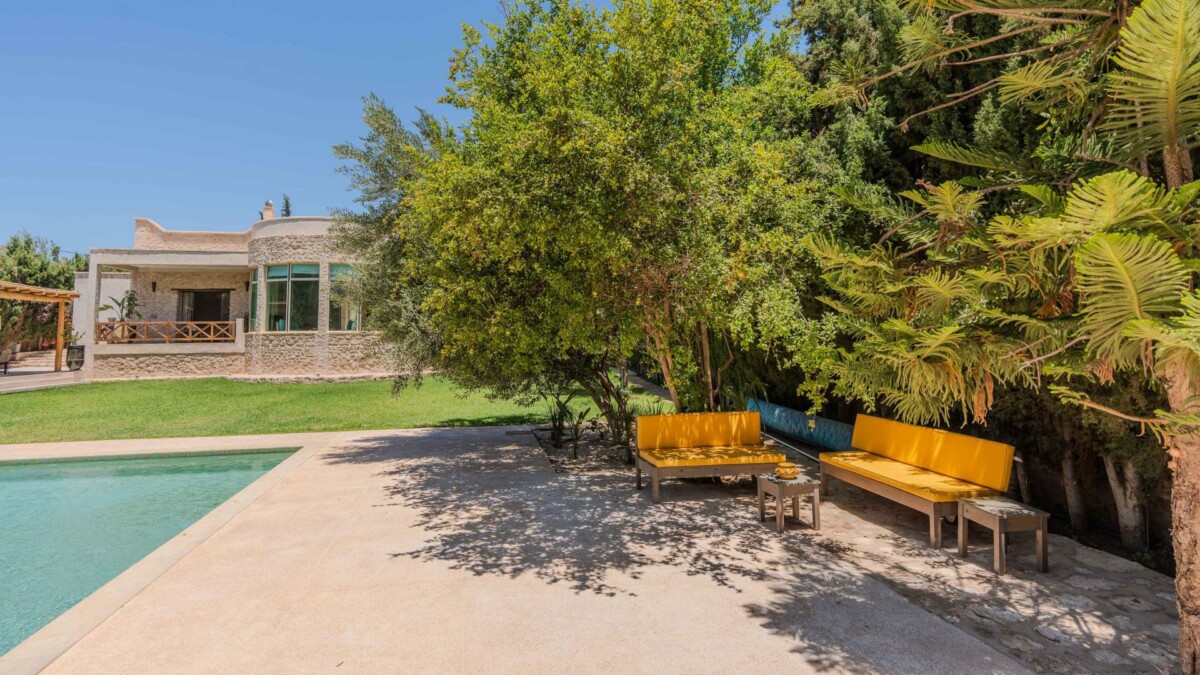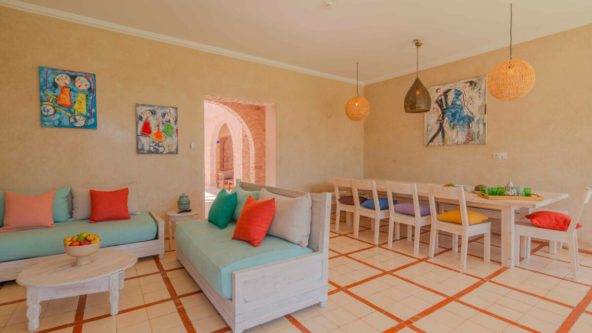 – Un salon marocain et sa terrasse privée face à la piscine.
