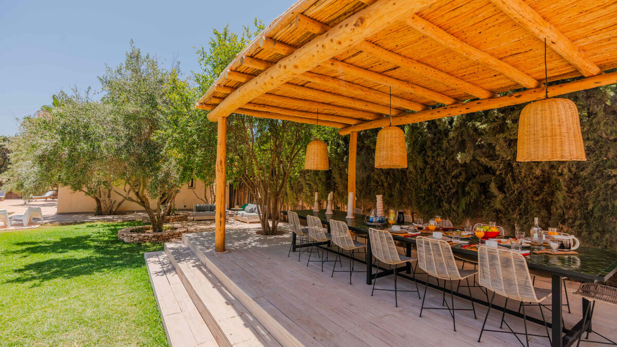 La piscine est entourée d’une terrasse et véranda avec salon et table à manger pour 10 personnes.