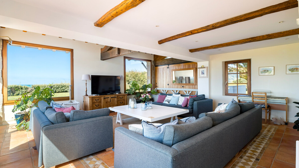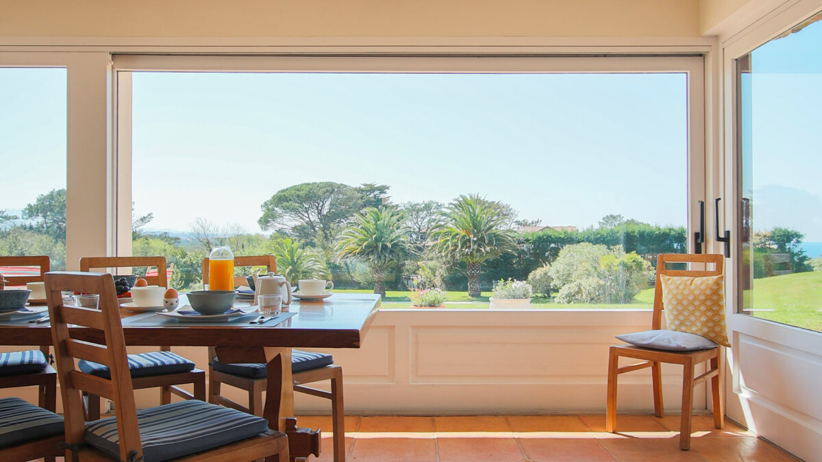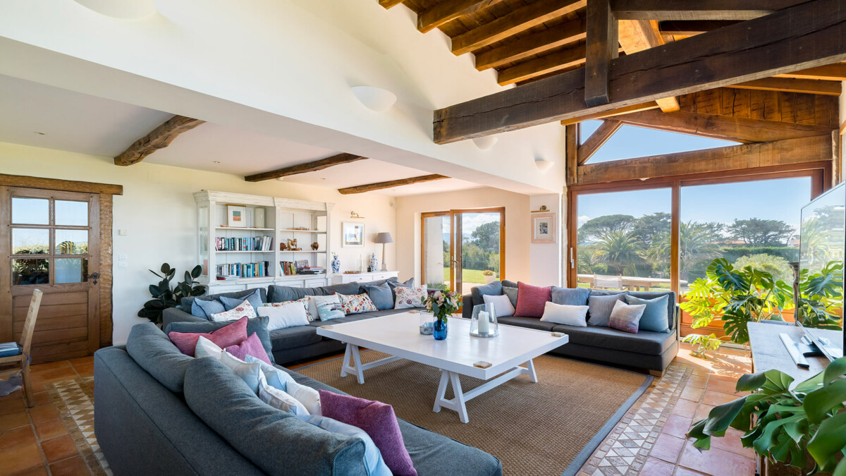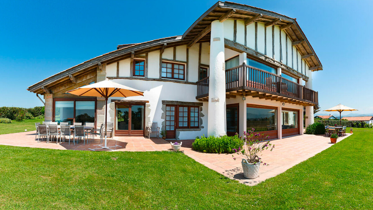 La maison Imilie est une jolie propriété en bord de mer, à 200 mètres de la plage. Elle dispose d’un parc boisé de 3,5 hectares, le lieu idyllique pour votre séjour sur la Côte Basque française. Cette maison familiale, construite en 1999, est entourée de lavande et palmiers. Elle bénéficie d’un emplacement spectaculaire surplombant l’océan et les Pyrénées. Cette maison vous séduira par son ambiance chaleureuse et sa décoration soignée. C’est un havre de paix et de tranquillité avec vue sur l’océan.