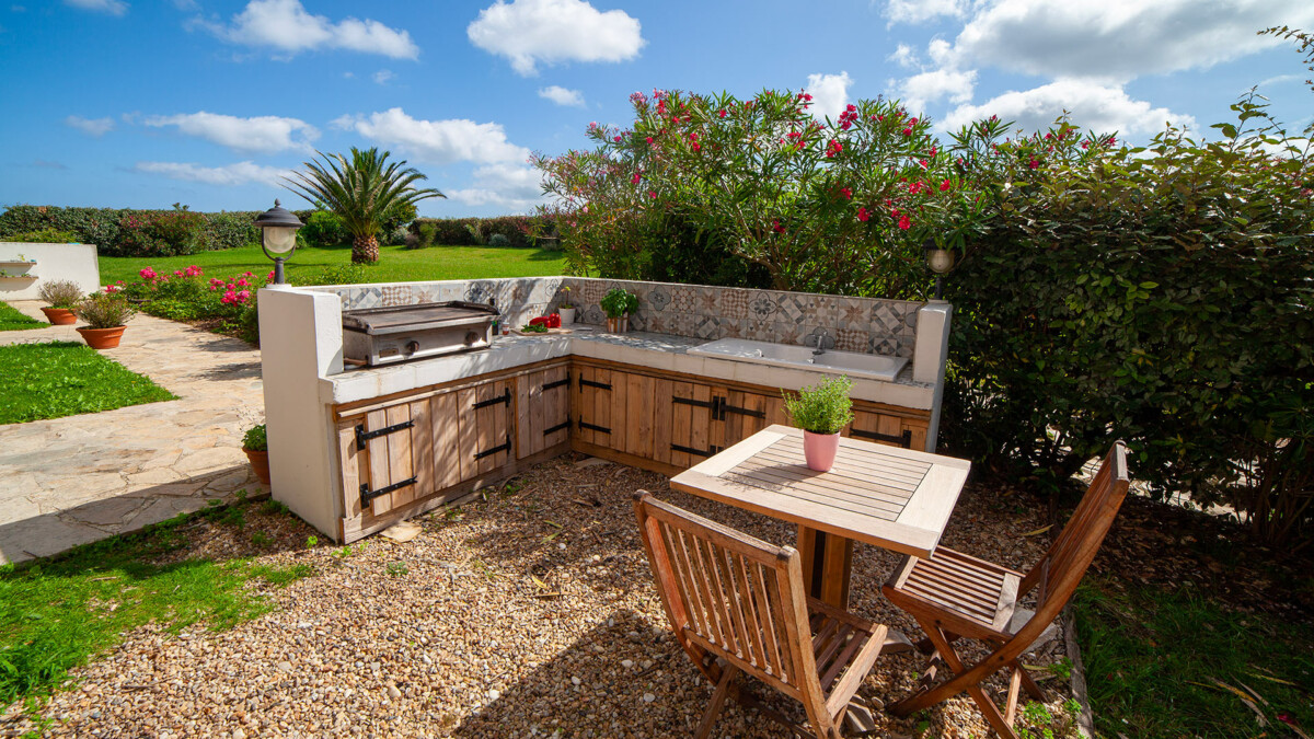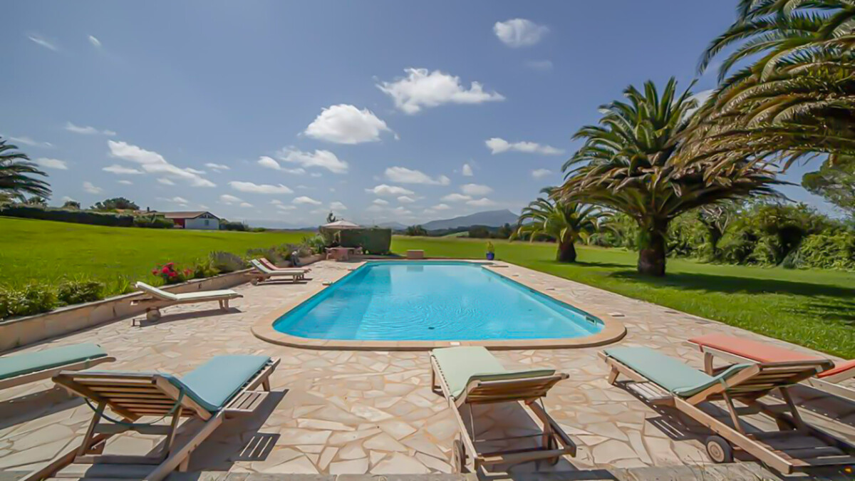 Une piscine d’eau salée chauffée (sauf de mi-octobre à fin avril) de 17 x 6 mètres trône au milieu du jardin et des transats placés à côté vous permettront de vous reposer. Une cuisine extérieure et une plancha sont à votre disposition, vous pourrez profiter d’un agréable barbecue dans l’espace ouvert du coin repas. La propriété dispose d’un grand parc offrant à ses hôtes les avantages du calme et de la vue magnifique sur la mer.